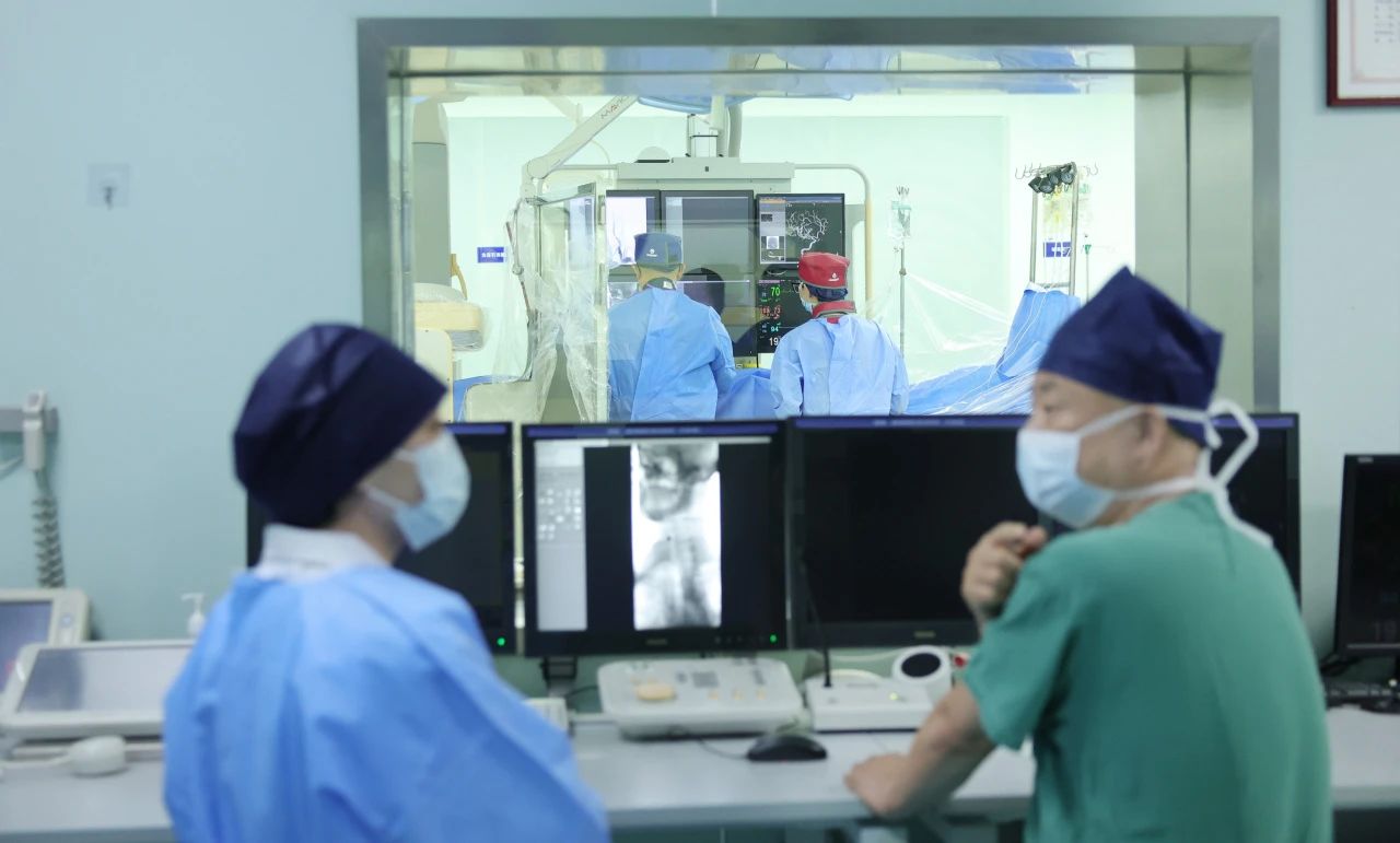 手術過程中,席剛明教授與王貴平博士團隊展示了從影像評估、路徑選擇、穿刺操作到支架植入的完整流程,充分體現了團隊對神經介入技術的熟練掌握與協同能力。手術間隙,Sophie Su博士先后與周克祥副院長、席剛明教授、盧云鶴博士、王貴平博士等就手術適應癥、技術路徑、耗材選擇、醫護資質及術后隨訪管理等議題展開經驗交流和智慧碰撞。