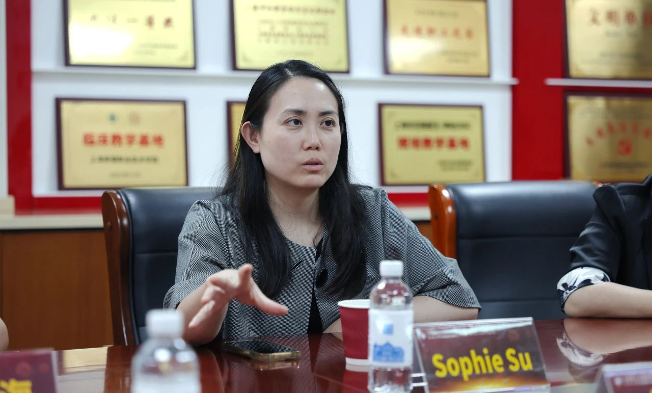 最后,在會議室舉行了座談交流會。潘耀良副院長代表醫院對Sophie Su博士的到訪表示熱烈歡迎,并從醫院概況、醫院文化、學科建設、設施設備及發展愿景等方面介紹了醫院情況。