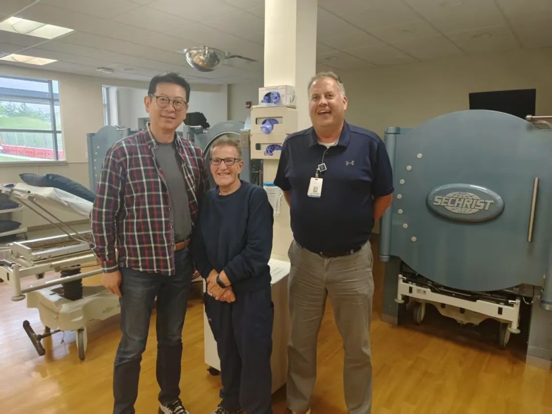“這里看上去像個飛機艙”。在參觀環節中,首次近距離接觸了高壓氧治療艙的居民朋友充滿了好奇。戴醫生細致地講解了設備的運作原理、標準治療流程,以及針對不同病癥的臨床應用方案,讓居民朋友們對這項特色治療技術有了更直觀、深入的了解。