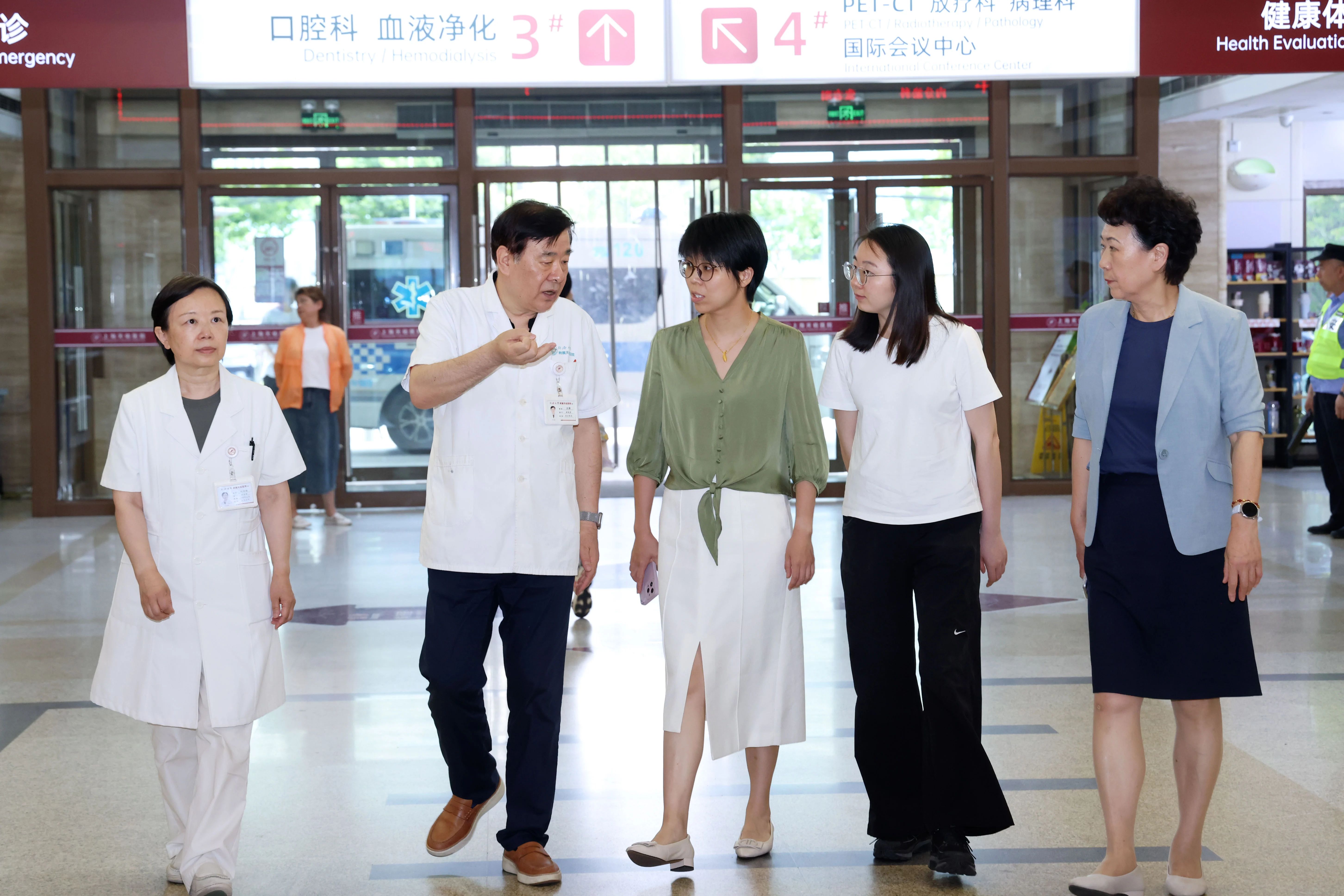 6 月 20 日下午,上海杉達學院國際醫學技術學院黨總支書記丁儉一行來到上海天佑醫院醫院,開展“教學研”工作情況調研活動。公司副總裁葉文琴、醫療管理部護理培訓主任唐秀花,上海天佑醫院執行院長王強,副院長、護理部主任劉瑋琳陪同參觀并座談。