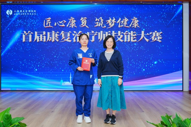 評委專家分別從“病例描述、評估準確性、方案創新性、現場操作、現場表達”五個維度打分,結合現場提問表現,最終綜合三位專家的評分,比賽成績當場揭曉:雷珍珍《髖關節置換術后康復技能展示》獲得一等獎;王倩 《腰椎骨折術后康復治療的案例匯報》、趙艷艷《丘腦出血患者病例分享》分獲二等獎;緱鵬威《從“心”開始,自在呼吸》、荊梅《“肩”守使命,“袖”寫未來》獲得三等獎。大賽現場舉行了頒獎儀式。