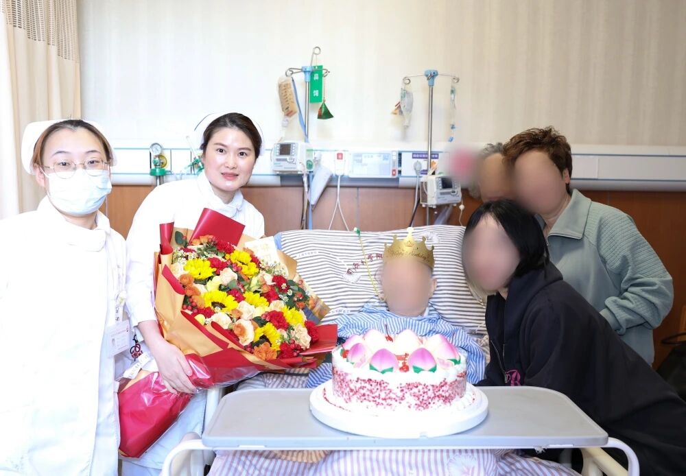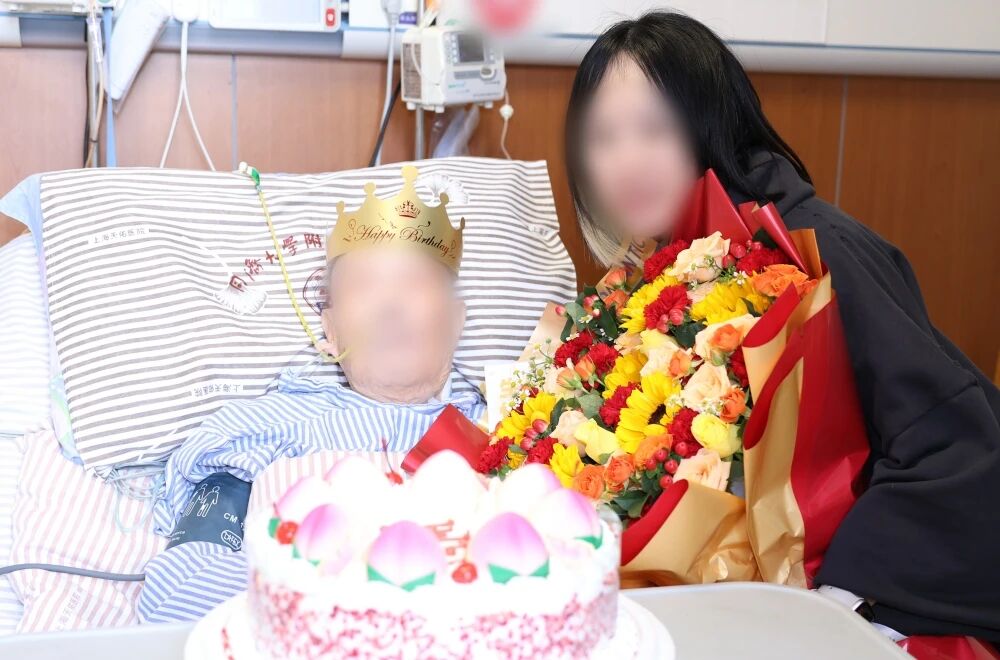 一大早,醫護人員特地提前為老人做好了各項檢查和護理,家屬也早早來到病房,擺好鮮花、蠟燭和蛋糕。老人雖然躺在病床上,卻格外精神,看著家人和醫護人員一起為他準備生日儀式,臉上充滿了幸福的微笑和感激,不停地向大家表達著謝意。