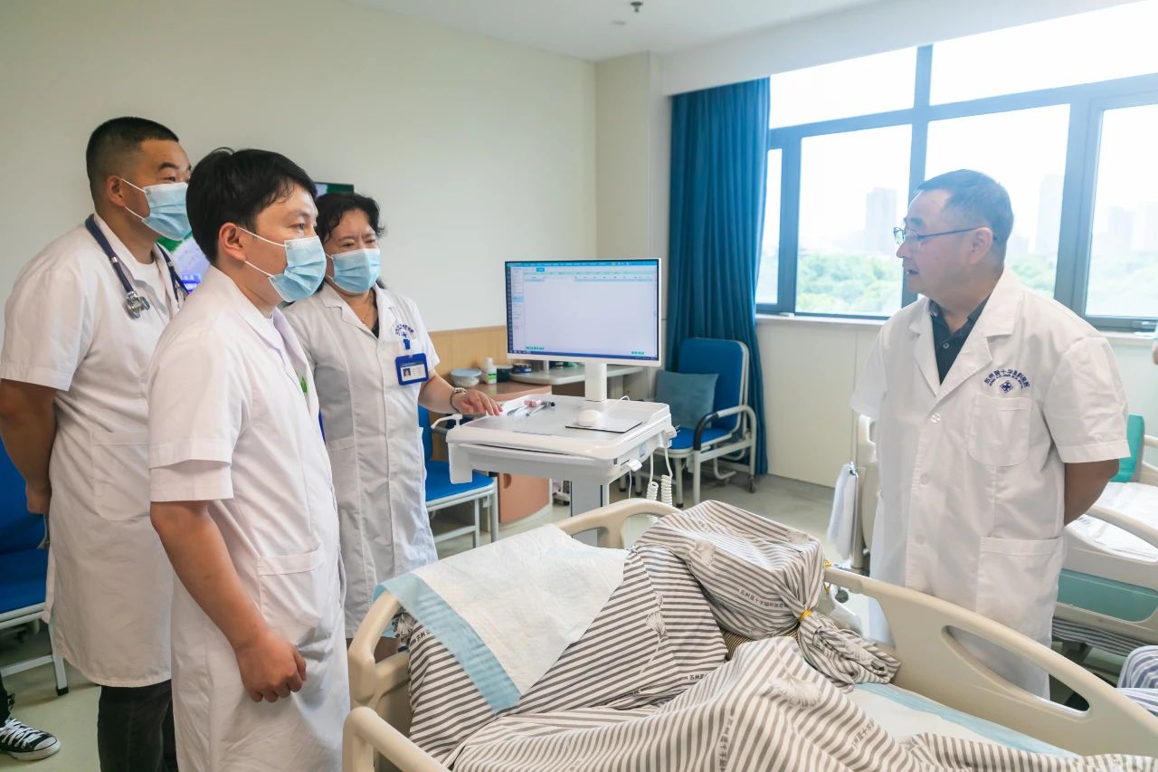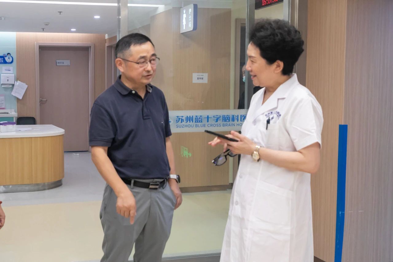 8月27日下午,劉春風院長率黃金忠副院長和蘇州藍十字腦科醫院神經內科魏亞芬教授、王紅艷主任聯合開展神經內科教學大查房,蘇州藍十字腦科醫院劉金爐總經理、張偉副院長、吳高雄副總經理陪同參與教學查房。