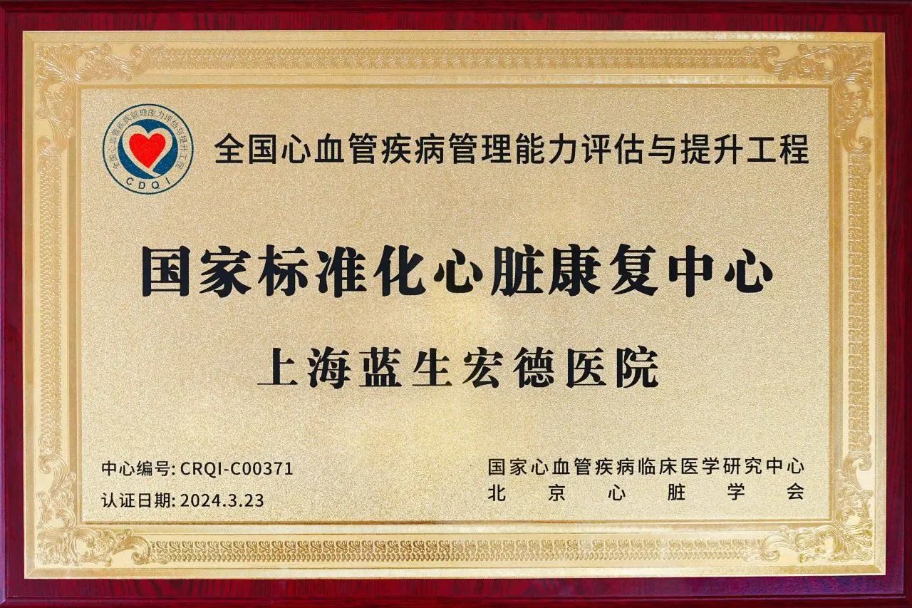 8月31日,2024年中國(guó)康復(fù)醫(yī)學(xué)會(huì)心血管疾病與康復(fù)專(zhuān)業(yè)委員會(huì)學(xué)術(shù)年會(huì)在吉林長(zhǎng)春召開(kāi)。會(huì)上,舉行了全國(guó)第八批心臟康復(fù)中心認(rèn)證單位授牌儀式,上海藍(lán)生宏德醫(yī)院被授予“國(guó)家標(biāo)準(zhǔn)化心臟康復(fù)中心”牌匾,標(biāo)志著醫(yī)院在心血管疾病預(yù)防、治療與康復(fù)領(lǐng)域邁上了新的臺(tái)階。