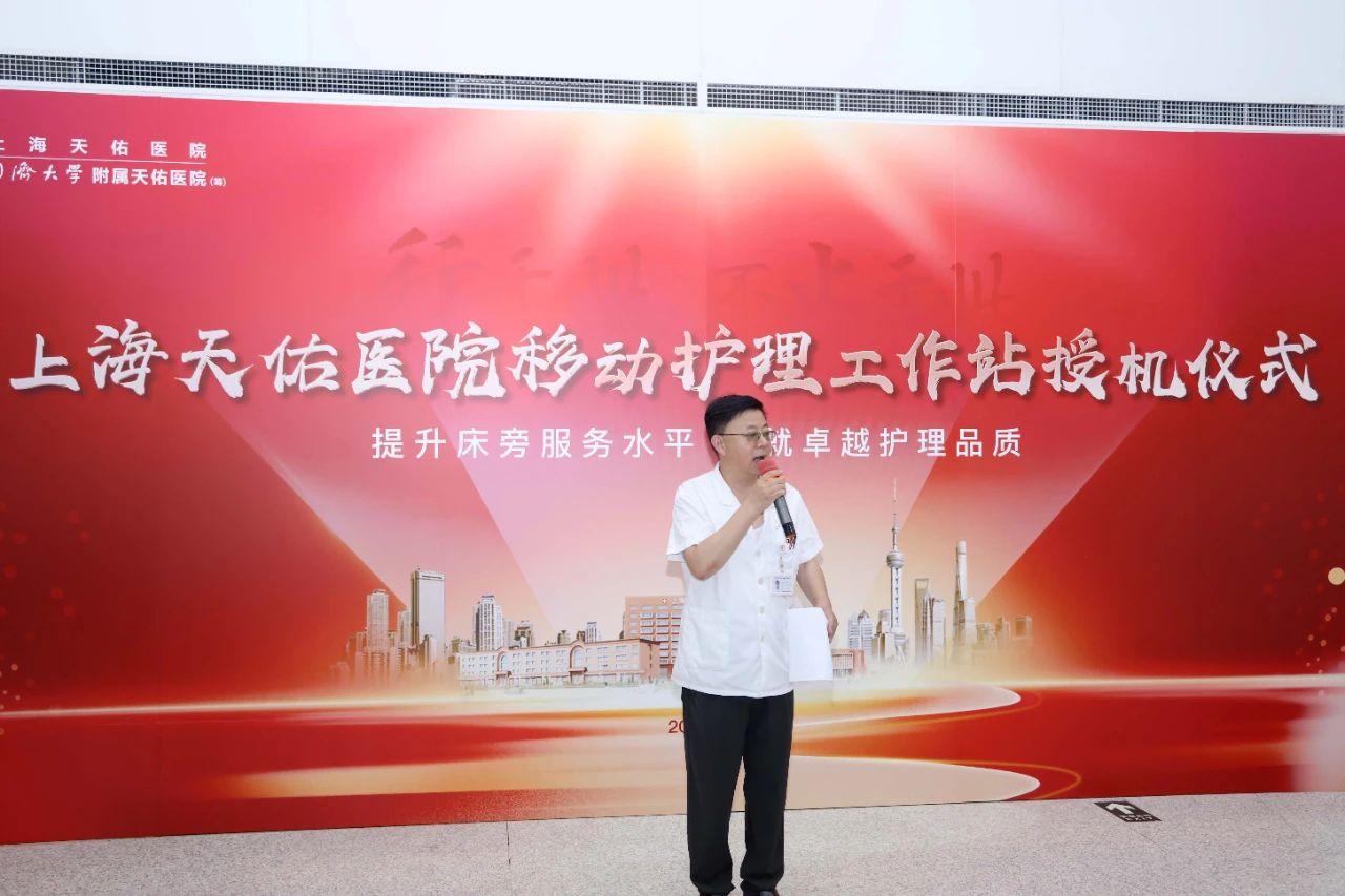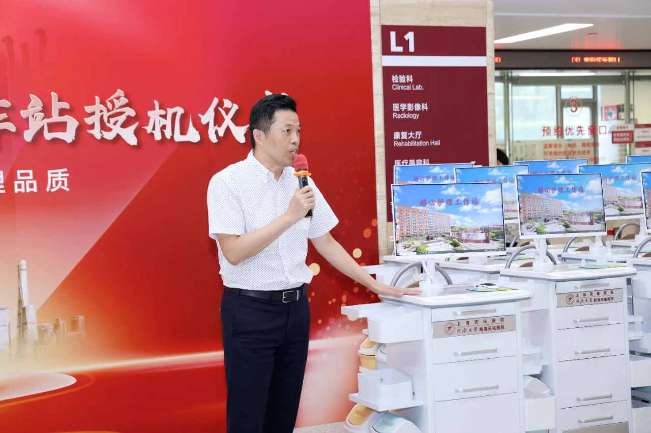 9月26日下午,上海天佑醫(yī)院在門診大廳舉行移動(dòng)護(hù)理工作站授機(jī)儀式,醫(yī)院蔡劍飛院長、卓立峰總經(jīng)理和領(lǐng)導(dǎo)班子出席儀式,為16個(gè)病區(qū)授予移動(dòng)護(hù)理工作站。