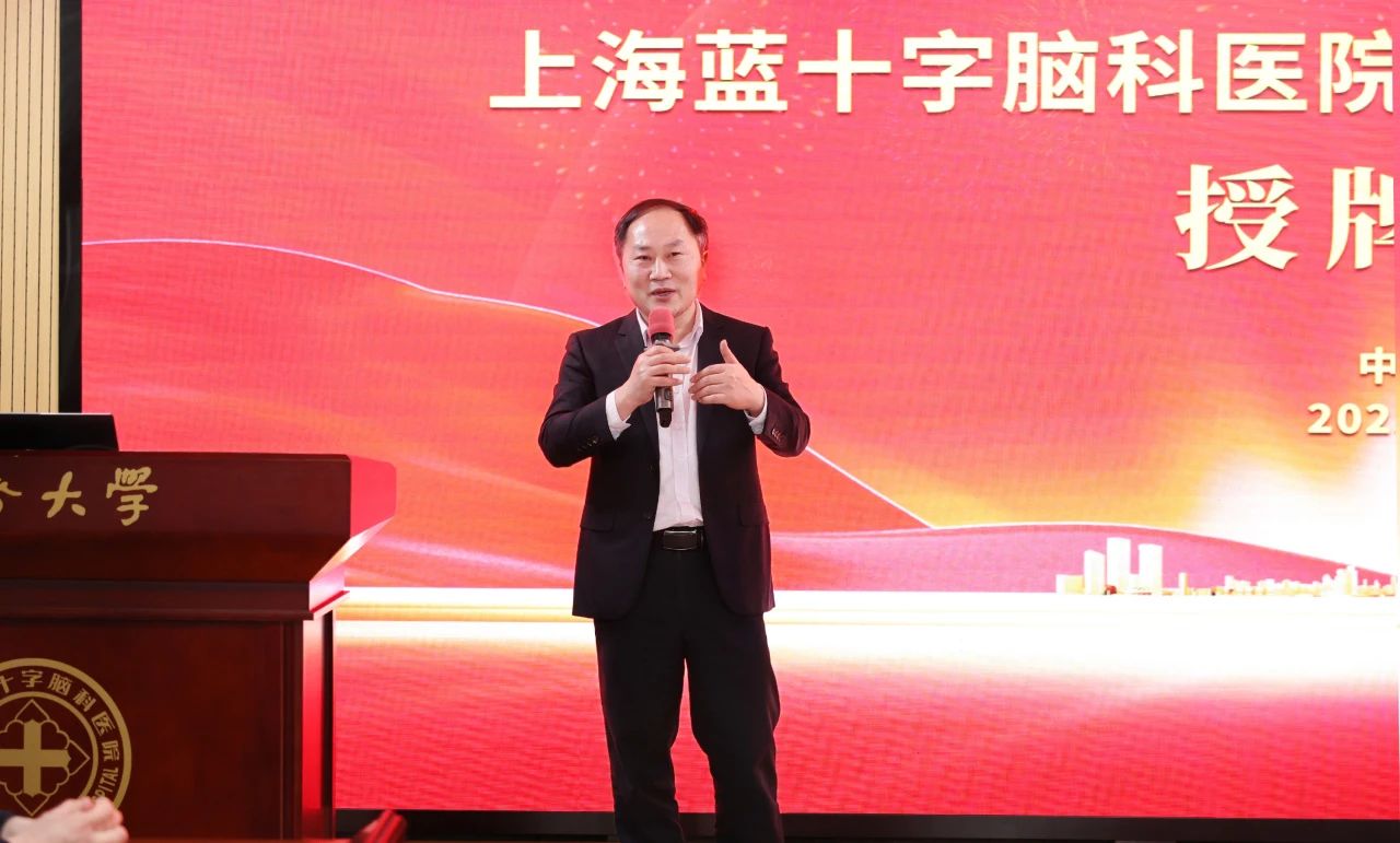上海交通大學(xué)醫(yī)學(xué)院附屬仁濟(jì)醫(yī)院南院神經(jīng)外科主任張曉華教授致辭。他介紹,“南上海神經(jīng)科學(xué)聯(lián)盟”于2018年7月在仁濟(jì)醫(yī)院南院成立,由他提議、仁濟(jì)醫(yī)院南院原神經(jīng)外科主任邱永明教授發(fā)起。聯(lián)盟是以神經(jīng)科學(xué)為紐帶的學(xué)術(shù)及醫(yī)療互助體,涵蓋相關(guān)的神經(jīng)學(xué)科臨床醫(yī)療和基礎(chǔ)研究,進(jìn)行以上海南部地區(qū)為主的,涉及上海及國(guó)內(nèi)多地多學(xué)科的有效互動(dòng)、合作共贏。聯(lián)盟成立以來(lái),每年組織學(xué)術(shù)交流活動(dòng),隊(duì)伍不斷壯大,影響力不斷提升,也讓患者受益,大大推動(dòng)了區(qū)域神經(jīng)學(xué)科合作與發(fā)展從“單打獨(dú)斗”走向“協(xié)同作戰(zhàn)”。他表達(dá)了一直以來(lái)對(duì)藍(lán)十字發(fā)展的關(guān)切,并對(duì)醫(yī)院在專科特色、科研教學(xué)、流程管理等方面的成績(jī)亮點(diǎn)給予肯定。同時(shí),他對(duì)醫(yī)院加入聯(lián)盟表示了誠(chéng)摯的歡迎與殷切的期待,懇切地談到,期望藍(lán)十字加入聯(lián)盟后,彼此的聯(lián)系能更加緊密:一是醫(yī)療上能互通有無(wú),充分發(fā)揮各自醫(yī)療資源及特色最大效能,提升患者全程化管理水平。二是教學(xué)上能同頻共振同交流,互學(xué)互鑒共提升。三是科研上能精誠(chéng)合作,和諧共贏,協(xié)同開展多中心研究。