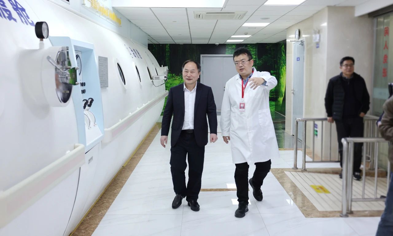 儀式結(jié)束后,張曉華教授一行在朱敏書記的帶領(lǐng)下,深入醫(yī)院手術(shù)室、9F重癥醫(yī)學(xué)科、康復(fù)醫(yī)學(xué)科、影像醫(yī)學(xué)科、高壓氧科、放療科等特色科室實(shí)地參觀,進(jìn)一步加深對(duì)醫(yī)院的了解,并就醫(yī)院學(xué)科建設(shè)、人才培養(yǎng)、科研創(chuàng)新、醫(yī)療服務(wù)、醫(yī)院管理等方面內(nèi)容進(jìn)行了互動(dòng)交流。