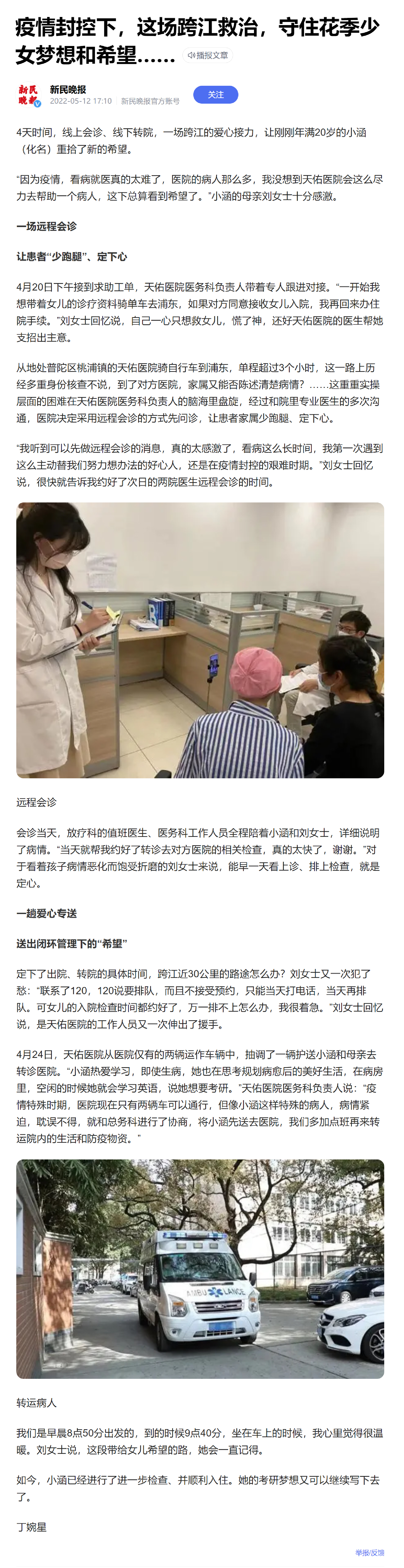 4天時(shí)間,線上會(huì)診、線下轉(zhuǎn)院,一場(chǎng)跨江的愛心接力,讓剛剛年滿20歲的小涵(化名)重拾了新的希望。