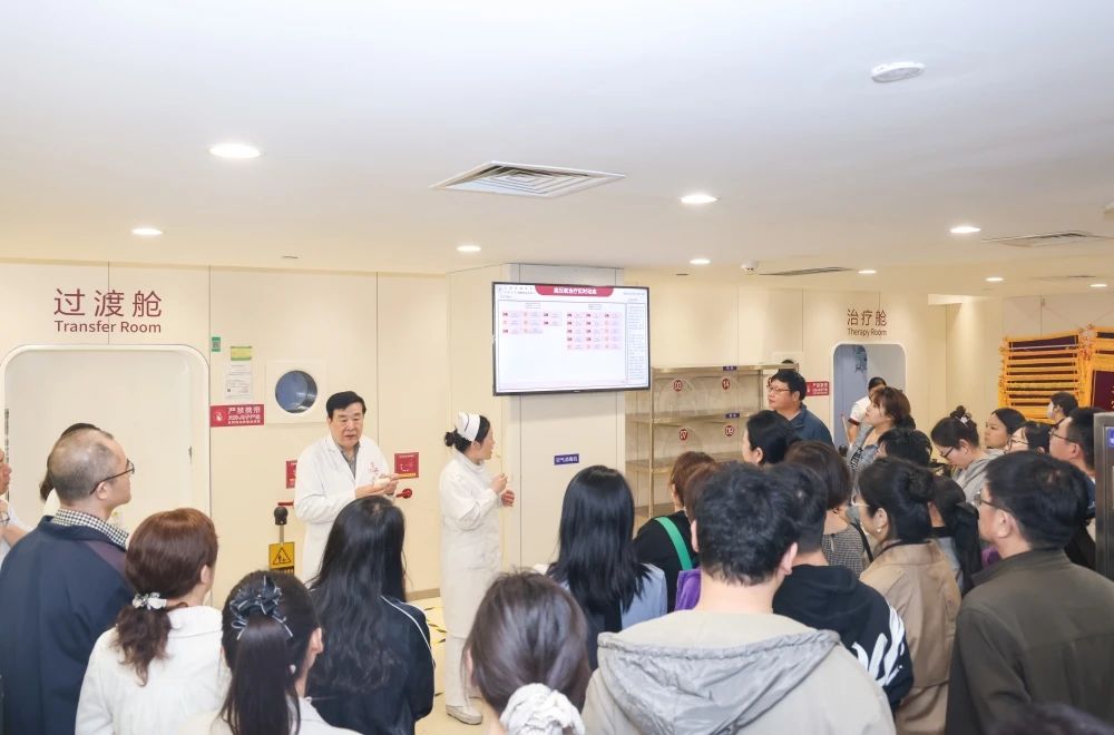 4月23日下午,研修班成員到上海天佑醫院參觀交流。在王強執行院長的陪同下,大家深入臨床一線,實地參觀了放療科、高壓氧腦復蘇病房、康復大廳、藍生醫院云影像中心等多個區域,并現場交流。