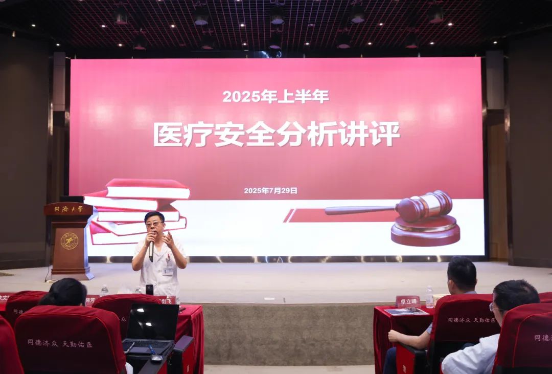 7月29日下午,上海天佑醫(yī)院召開2025上半年醫(yī)療安全分析講評會。會議是為進一步貫徹落實國家醫(yī)療質(zhì)量安全改進三年行動計劃(2023-2025)攻堅階段的工作要求,持續(xù)提升醫(yī)療質(zhì)量安全管理水平,保證醫(yī)療安全的專項會議。上海天佑醫(yī)院院長蔡劍飛、總經(jīng)理卓立峰等領(lǐng)導(dǎo),各臨床、醫(yī)技、職能科室負責(zé)人及骨干共兩百余人參會。執(zhí)行院長王強主持。