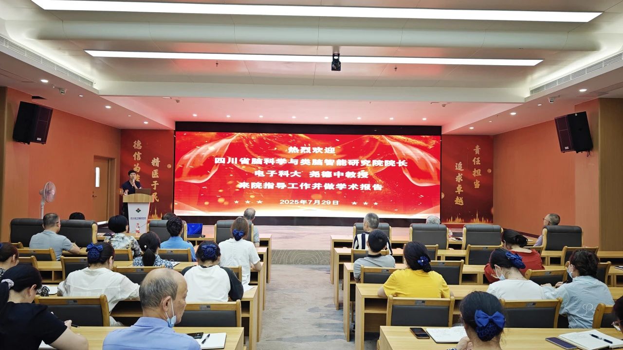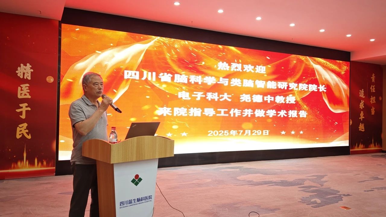 為推動腦科學前沿技術臨床轉化,促進多學科交叉融合創新,7月29日下午,四川藍生腦科醫院特邀電子科技大學類腦智能研究院堯德中院長來院作專題學術報告,并與醫院腦系學科帶頭人展開深度研討。
