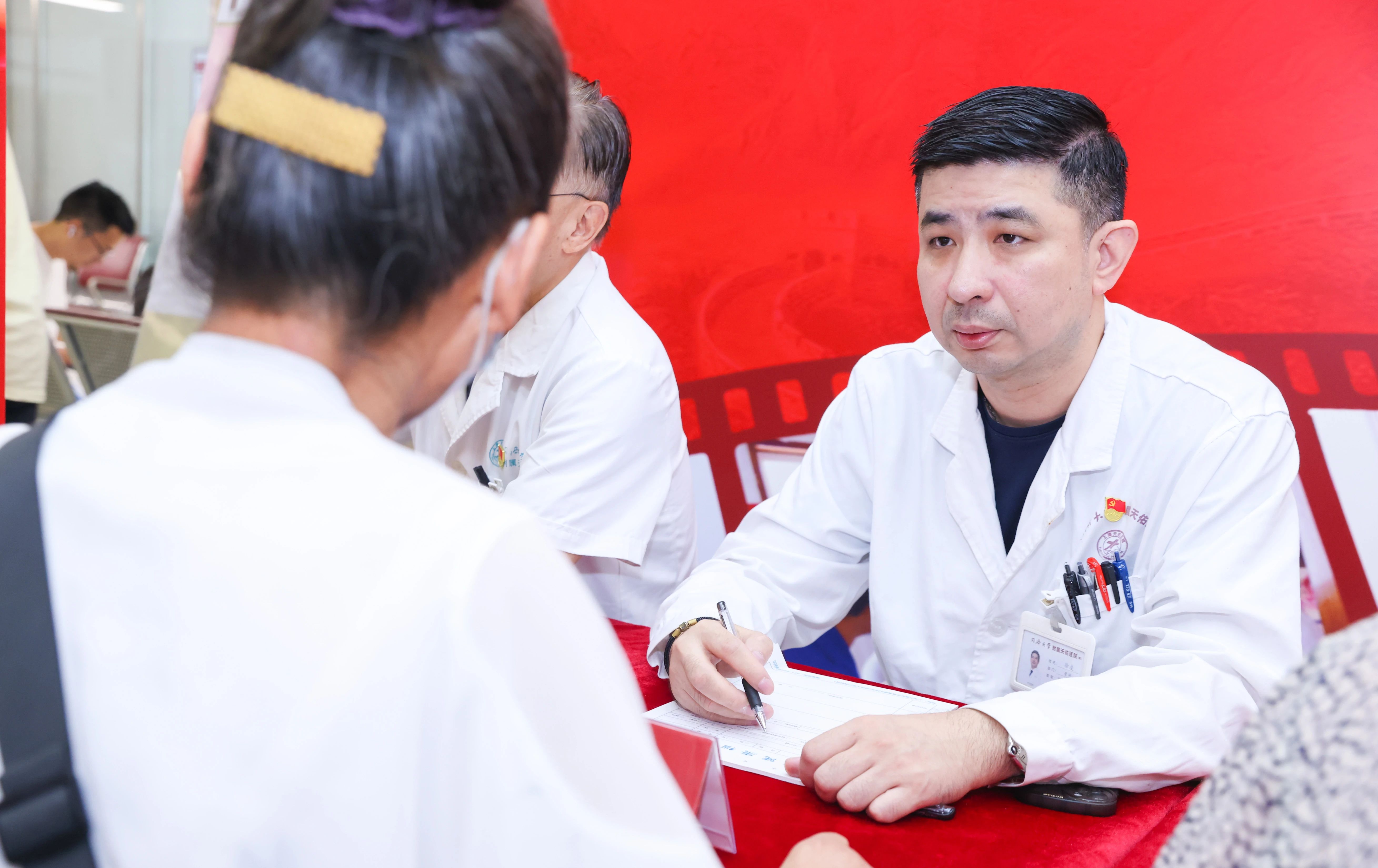 中醫(yī)咨詢臺(tái)前人頭攢動(dòng),熱鬧非凡。中醫(yī)科孫首慈醫(yī)生一邊手法熟練地為居民把脈,一邊仔細(xì)詢問居民的身體狀況,耐心解答疑問。