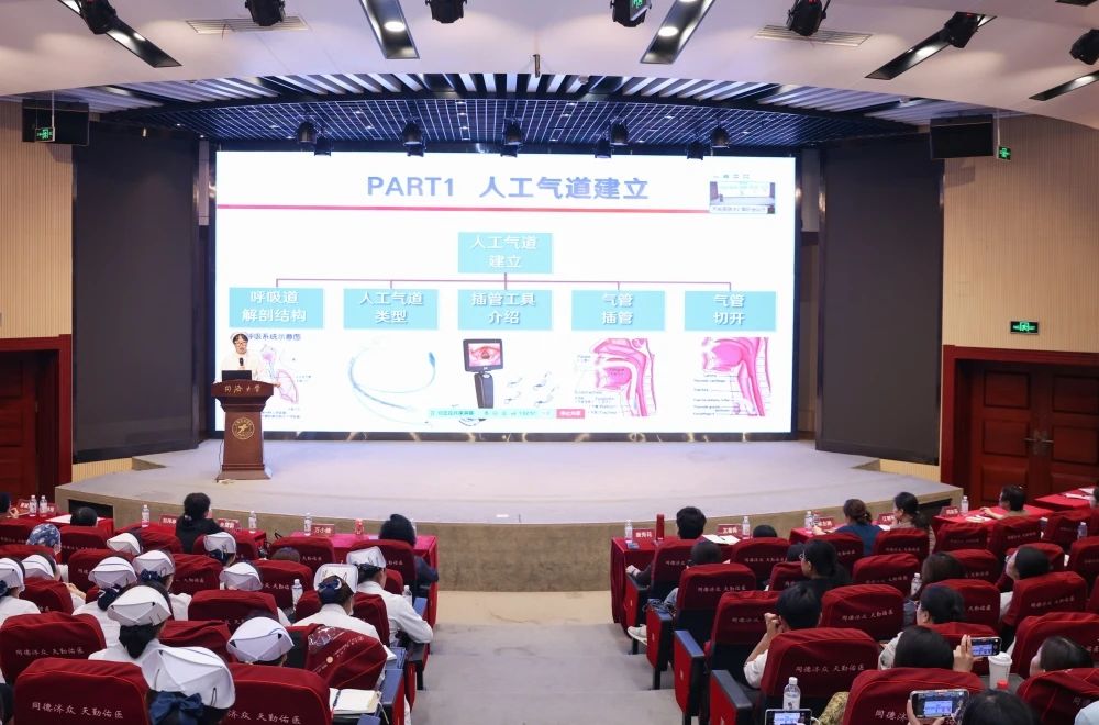 上海天佑醫院覃健鳳總護士長以《人工氣道的建立和管理》為主題,圍繞人工氣道的定義、人工氣道的種類、人工氣道的建立、人工氣道的管理等四個方面進行詳細講解。