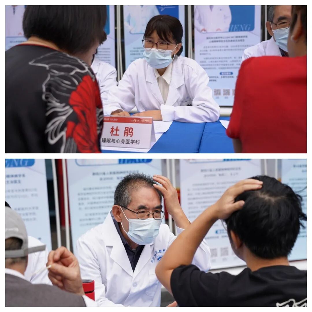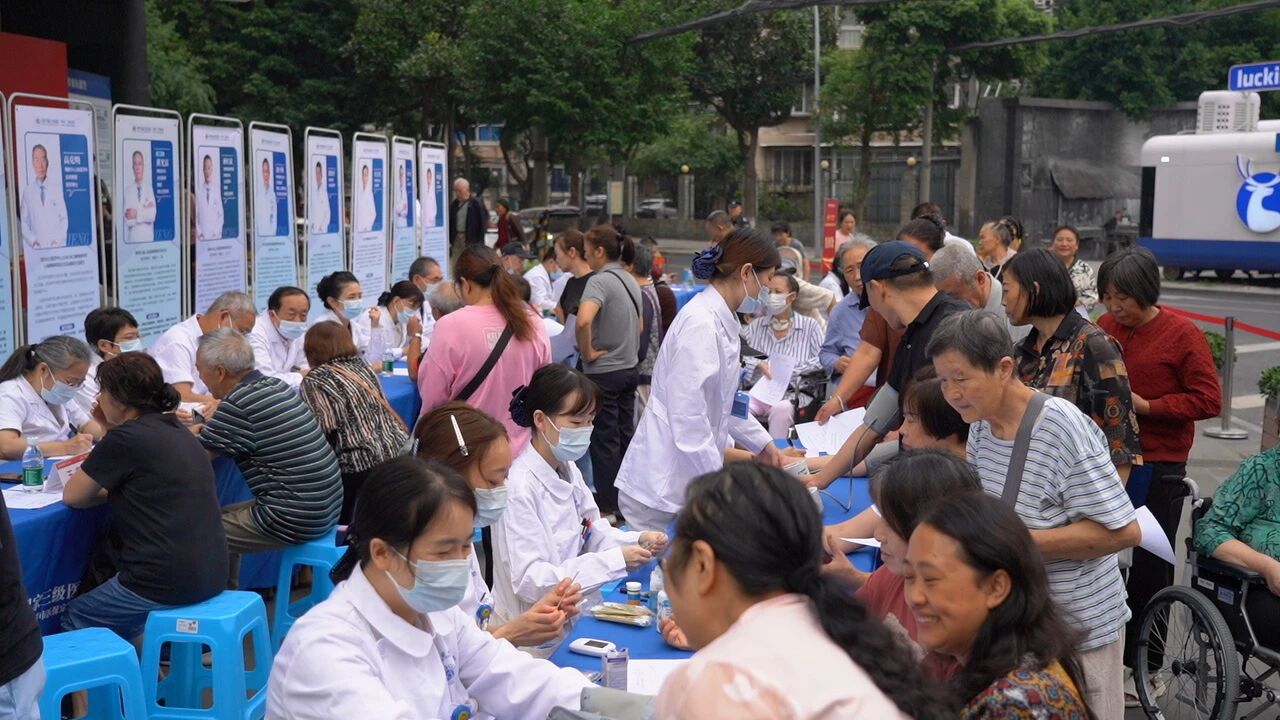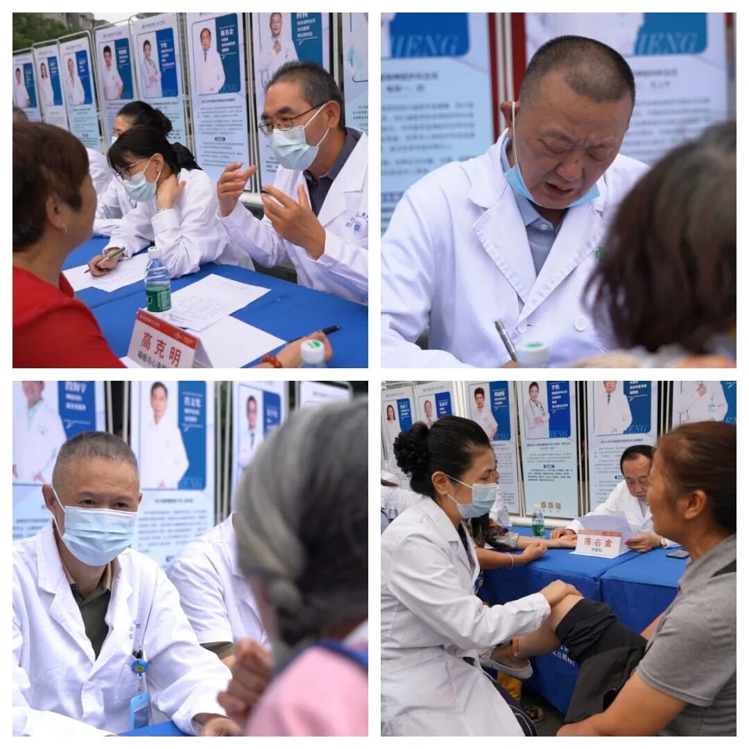 9點不到,活動現場已經聚集了不少前來問診的居民朋友。來自華西醫院、四川省人民醫院、四川省腫瘤醫院以及克利夫蘭醫學中心的知名專家攜手我院各學科帶頭人組成義診專家團隊,全面覆蓋神經內科、神經外科、睡眠與心身醫學科、康復醫學科、腫瘤科等20余個科室,強強聯合,為市民群眾們獻上了一份健康大禮。