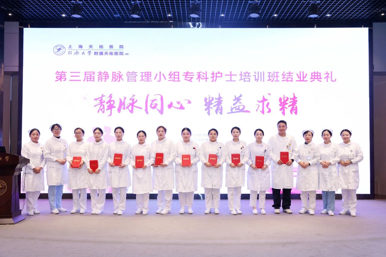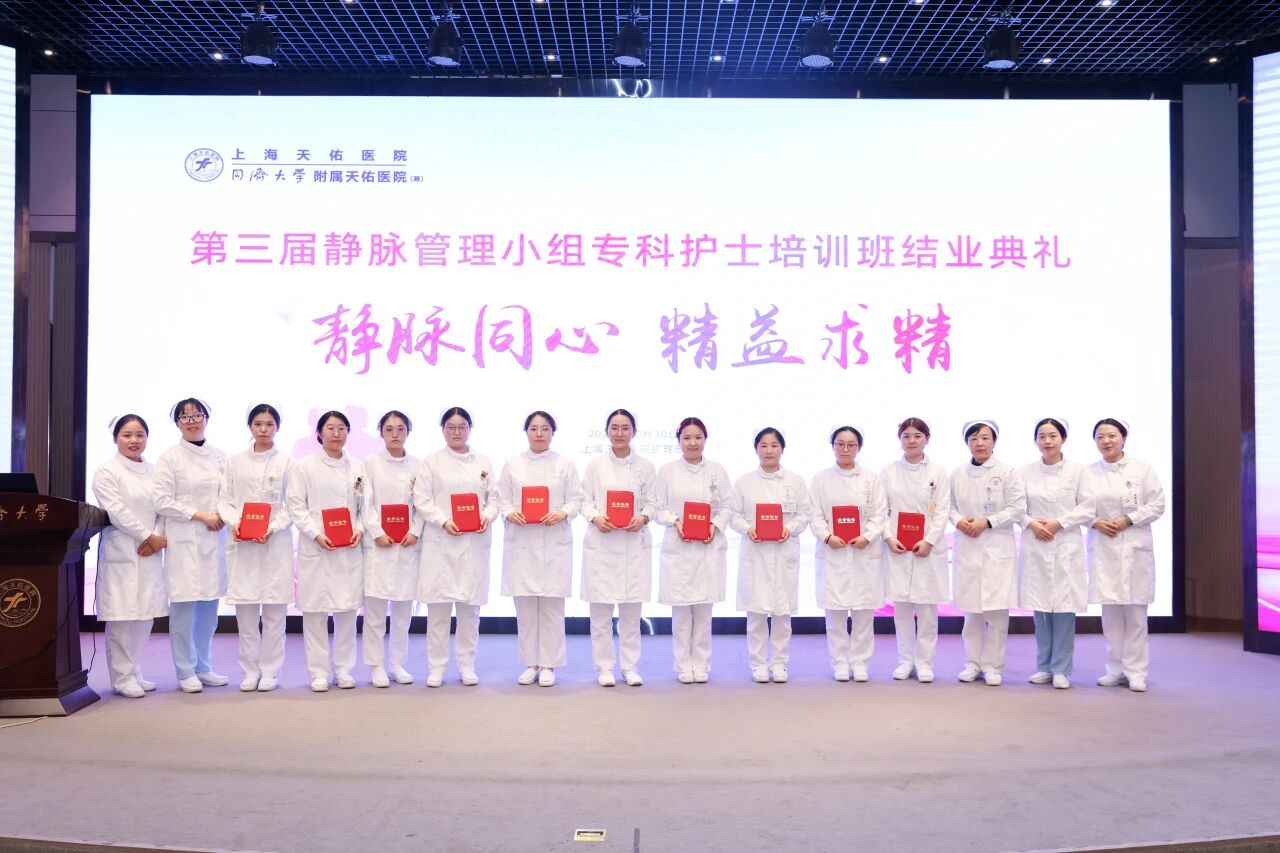 10月30日,上海天佑醫院第三屆靜脈管理小組專科護士培訓班結業典禮順利舉行,此屆共有90余人參加培訓,其中有86人通過理論及操作考核,順利結業并獲證書。典禮由護理部總護士長、靜療小組組長任海燕主持,副院長、護理部主任劉瑋琳及相關臨床科室帶教老師出席。