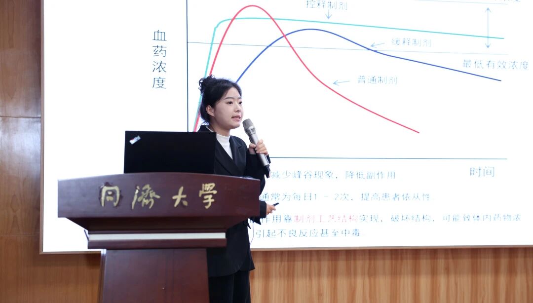 藥劑科藥劑師畢宏偉,在《從結構看片劑:能否掰開服用?——以緩控釋制劑為例》主題授課中,通過圖表、漫畫等輕松方式為與會者科普口服緩控釋制劑常見類型,并通過編纂的“順口溜”帶大家了解緩釋片“掰與不掰”的判定方法。贏得了評委一致好評。