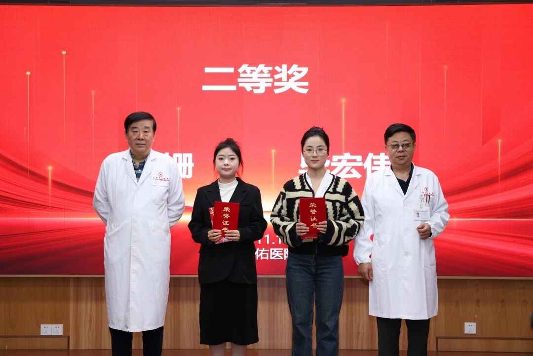 姜平副院長現場公布獲獎名單:超聲科主治醫師宋彬彬獲一等獎,神經內一科住院醫師胡姍、藥劑科藥劑師畢宏偉獲二等獎,口腔科住院醫師李文惠、內分泌科主治醫師沈宏輝、腎內科主治醫師沈穎婧獲三等獎。神經內一科技師肖若平、呼吸內科主治醫師李康馨、呼吸內科主治醫師劉曉明、綜合外科主治醫師郭建強獲優秀獎。