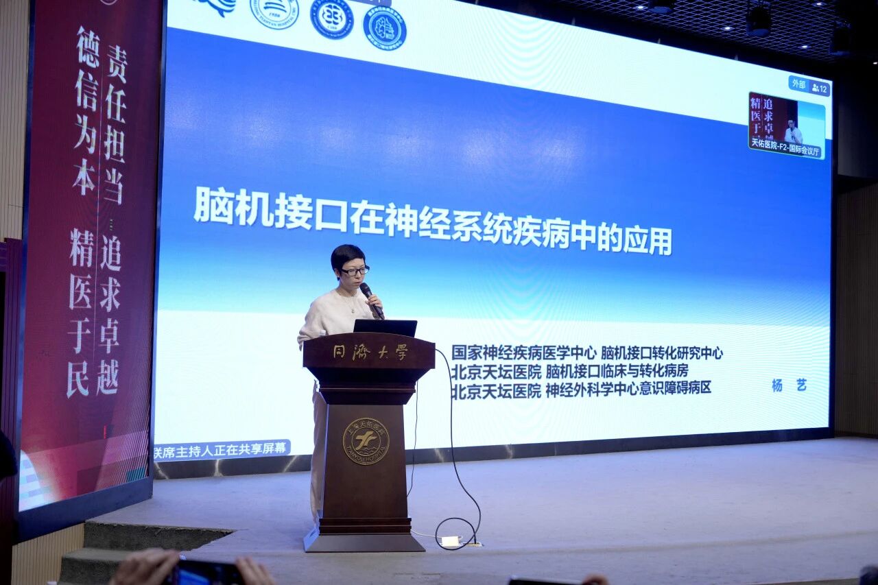 作為報(bào)告的核心,楊教授重點(diǎn)闡述了北京天壇醫(yī)院在腦機(jī)接口臨床轉(zhuǎn)化方面的系統(tǒng)實(shí)踐,包括全國(guó)首個(gè)腦機(jī)接口門診的設(shè)立、工作專班的組建、完整腦機(jī)接口技術(shù)譜系的構(gòu)建等創(chuàng)新舉措。結(jié)合臨床病例,她從診療方案、應(yīng)用成效、研究設(shè)計(jì)等維度,全面講解了腦機(jī)接口技術(shù)在“腦機(jī)接口(EEG+EMG)+半閉環(huán)SCS治療卒中后偏癱”“半侵入腦機(jī)接口(ECog)+FES治療卒中后偏癱”“脊髓-外周神經(jīng)融合精準(zhǔn)調(diào)控技術(shù)”“閉環(huán)腦深部電刺激治療慢性意識(shí)障礙”“閉環(huán)脊髓電刺激治療慢性意識(shí)障礙”“慢性意識(shí)障礙相關(guān)視覺(jué)腦機(jī)接口技術(shù)”“慢性意識(shí)障礙相關(guān)運(yùn)動(dòng)腦機(jī)接口技術(shù)”“無(wú)創(chuàng)腦機(jī)接口調(diào)控”等八大臨床場(chǎng)景中的實(shí)踐應(yīng)用,用翔實(shí)數(shù)據(jù)展現(xiàn)腦機(jī)接口技術(shù)在改善患者運(yùn)動(dòng)、言語(yǔ)、認(rèn)知等功能方面的獨(dú)到療效,并對(duì)腦機(jī)接口技術(shù)的未來(lái)發(fā)展趨勢(shì)進(jìn)行了研判。楊藝教授對(duì)腦機(jī)接口技術(shù)未來(lái)發(fā)展充滿信心,也呼吁更多醫(yī)療機(jī)構(gòu)與人才加入相關(guān)組織與聯(lián)盟,共推腦機(jī)接口技術(shù)創(chuàng)新與臨床轉(zhuǎn)化。