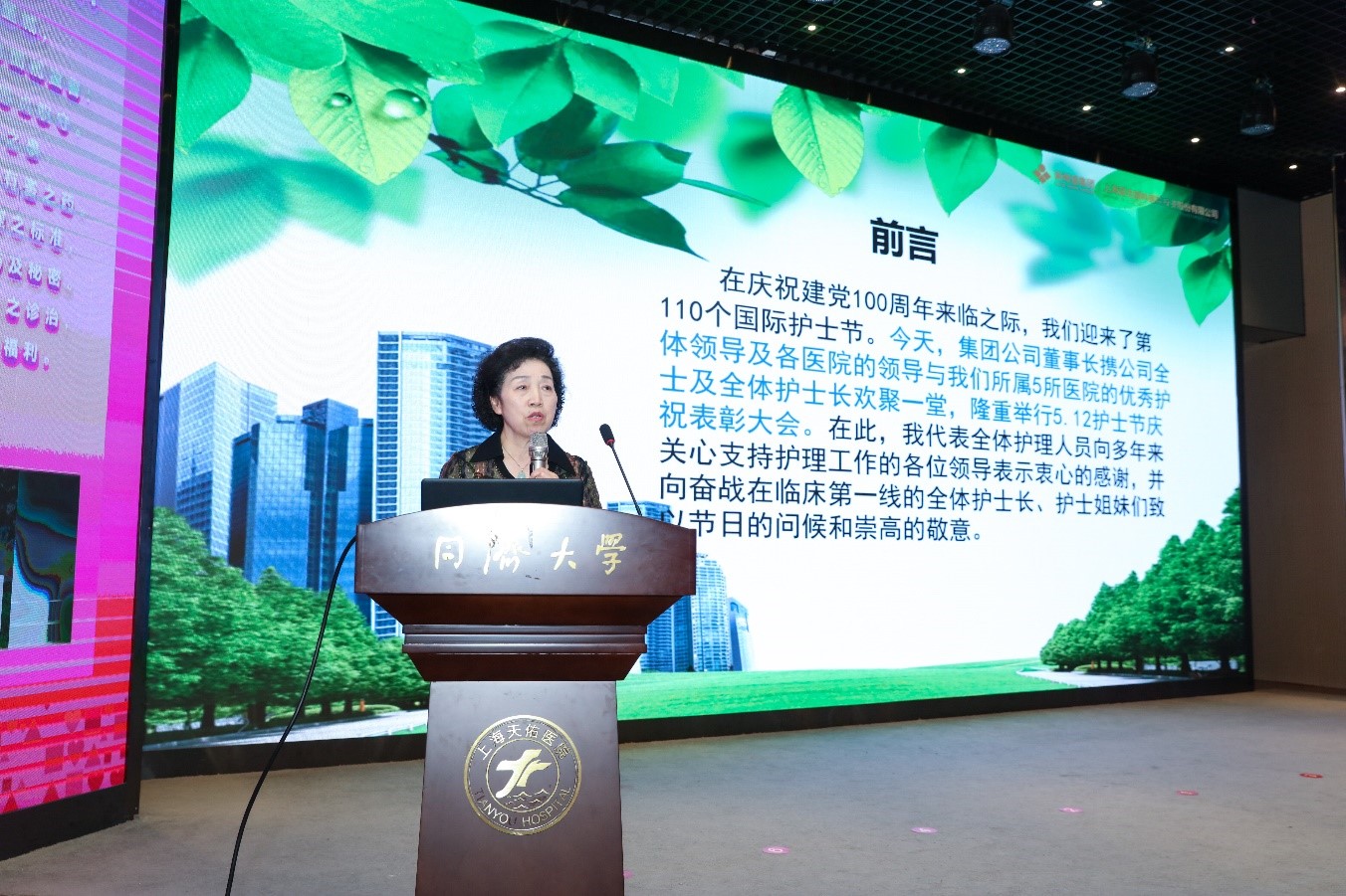 5月12日下午,公司在同濟大學附屬天佑醫院國際會議廳隆重舉行2021年“5·12國際護士節”慶祝表彰大會,慶祝第110個國際護士節,總結公司護理工作成績,表彰首屆護士長技能大賽獲獎選手和在護理戰線上作出突出貢獻的優秀護士,明確公司護理工作的奮斗目標和主要任務,動員公司上下開創護理工作新局面。