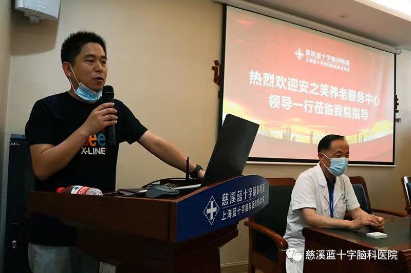 8月20日上午,慈溪安之笑健康養老公司董事長宓立軍等一行30余人蒞臨公司旗下慈溪藍十字腦科醫院參觀考察,醫院領導班子陪同引導。