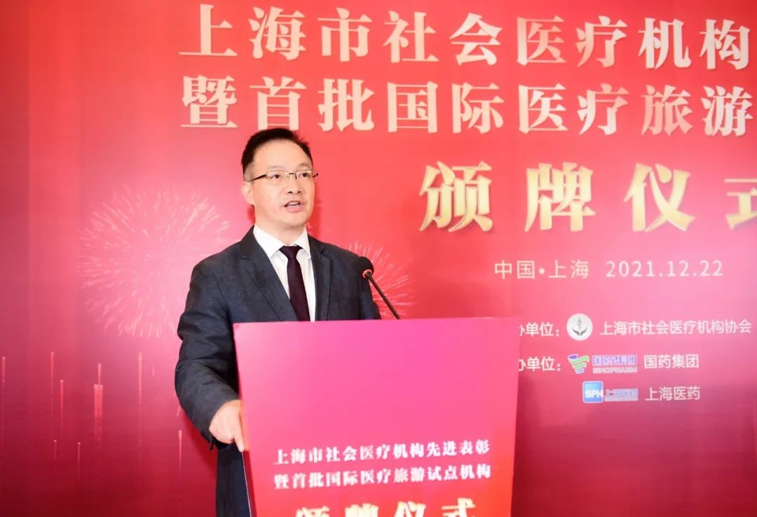 12月22日,上海市社會醫療機構協會舉辦先進表彰暨首批國際醫療旅游試點機構授牌儀式。上海市衛生健康委員會規劃處徐崇勇處長,上海市社會醫療機構協會閆東方會長、鐘菊華副會長、劉泓虎副會長、張澄宇副會長、廖會員副會長、李立新秘書長,上海市衛生健康委員會規劃處嚴曉南主任科員出席。