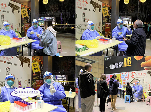 自3月9日起,藍(lán)生宏德醫(yī)院接連接到衛(wèi)健委及吳涇鎮(zhèn)政府核酸采樣任務(wù),每日組建由30名左右的醫(yī)務(wù)人員組成的抗疫支援隊(duì)伍,不斷奔赴于閔行周邊各高職校、居民區(qū)、工地執(zhí)行核酸采樣任務(wù)。截止當(dāng)前,累計(jì)派出8批合計(jì)211名醫(yī)護(hù)人員,緊急奔赴抗疫一線,支援閔行區(qū)疫情防控工作,確保核酸采樣的安全、有序開(kāi)展。