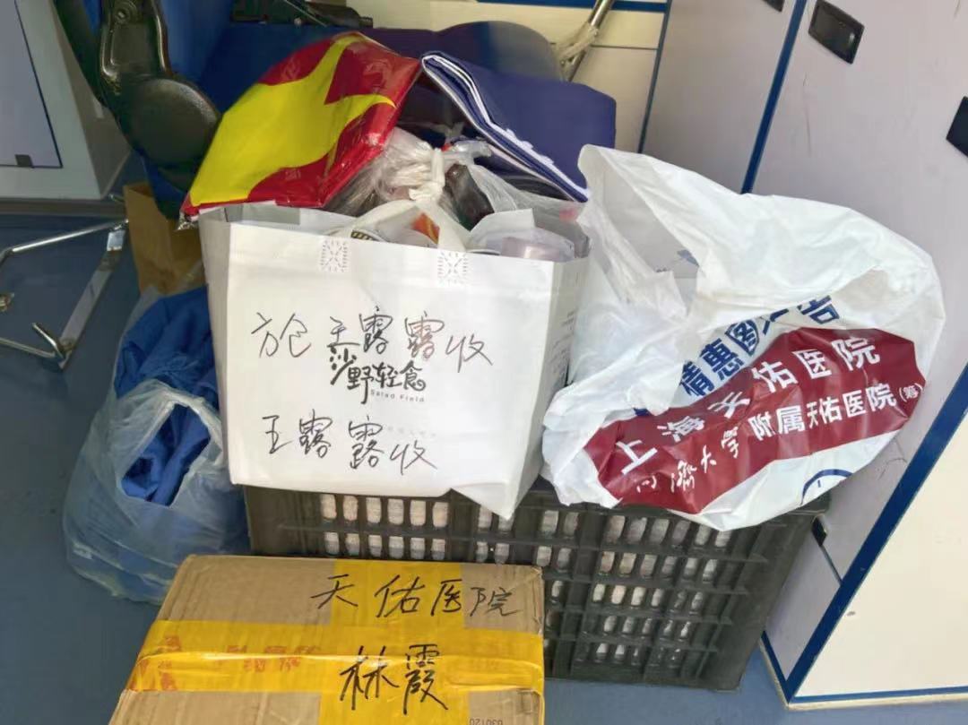 4月9日上午10點(diǎn)左右,天佑醫(yī)院安排的專車順利到達(dá)普陀區(qū)臨時集中隔離點(diǎn),為在那里參與救治工作的14名隊(duì)員送去了水果和生活物資。