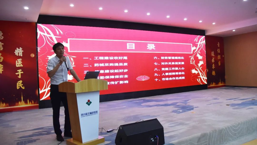 四川藍生腦科醫院領導班子成員分別圍繞疫情防控、工程建設、證件辦理、人事招聘、學科建設、藥械采購、信息建設、財務管理、后勤保障、醫保開通、品牌宣傳、對外關系、黨建工作、市場合作等作工作匯報。