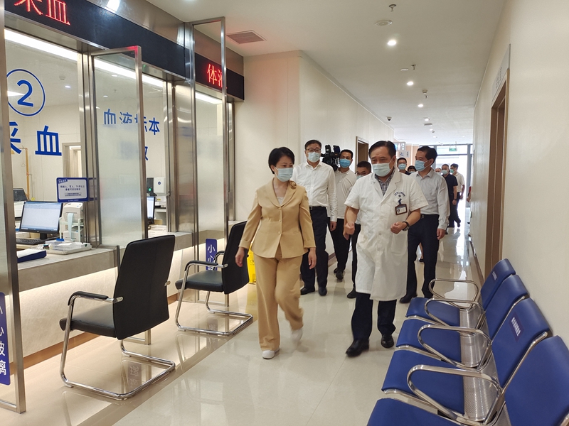 視察組一行先后深入醫院預檢分診、門診大廳、門診候診區、神經內科104病區、醫學影像科、消控室等重點場所,過程中不斷詢問醫院開業后醫療質量管理、學科建設與醫院運營的各項工作具體情況,如醫務人員結構、開放床位、設備配置、在院病人數等,徐必生院長和劉金爐總經理一一做出了回答。季晶副市長對醫院先進的診療設備、優美的就醫環境、現代化的醫院管理理念及運營所取得的成績予以充分肯定。