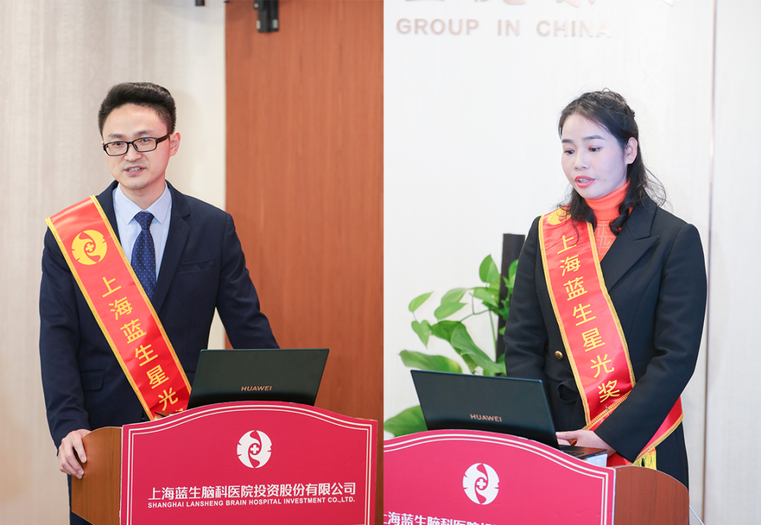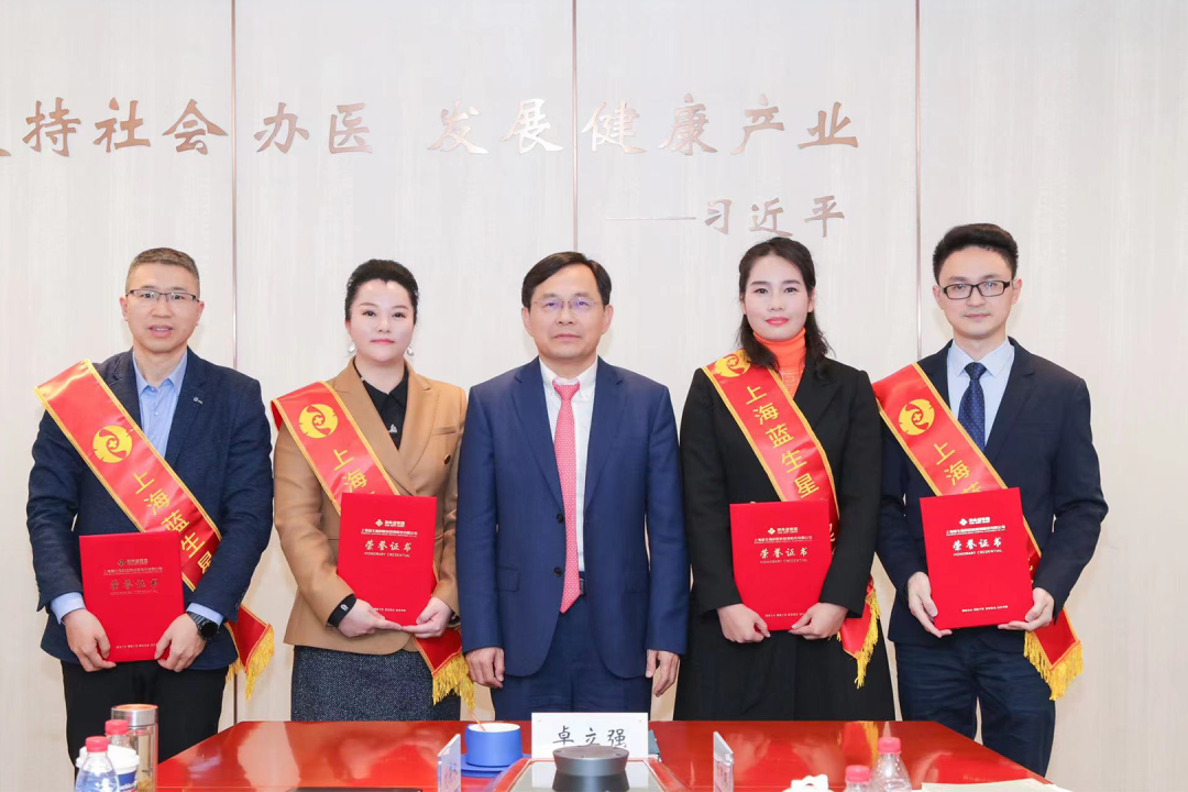 頒獎環(huán)節(jié),卓立強董事長為“藍生杰出星光獎”和“藍生星光獎”代表頒發(fā)獎杯證書、合影留念。卓立強董事長向獲獎人員表示祝賀,用“感動、感激、感恩”向“以生命守護生命、用擔當承載使命、以摯愛守護蒼生”的員工尤其是醫(yī)護人員表示感謝。