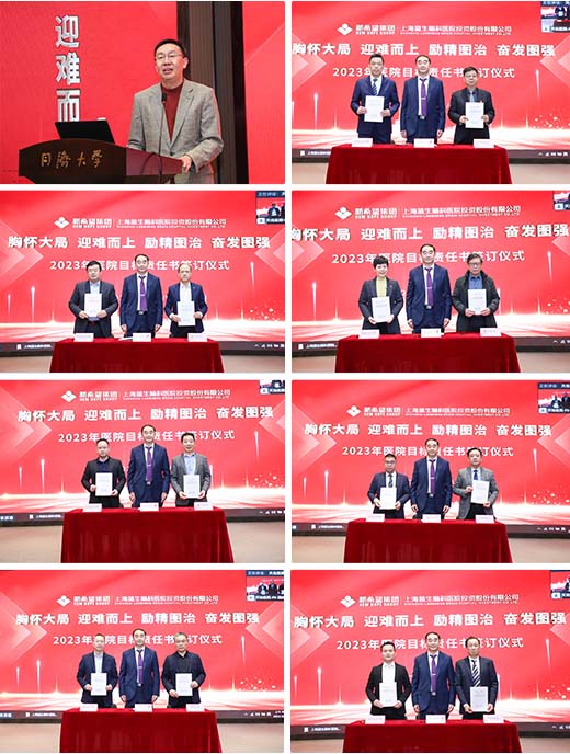 各醫院院長、總經理向劉軼永總經理簽訂并遞交2023年目標責任書。