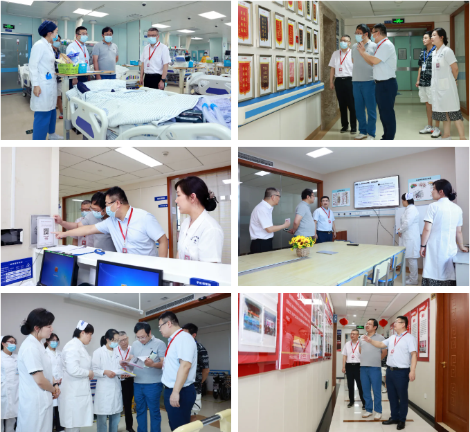 王曉東主任深入醫(yī)院手術室、9F重癥醫(yī)學科、7A神經內三科及示教室、電子閱覽室、黨建文化走廊等區(qū)域參觀。