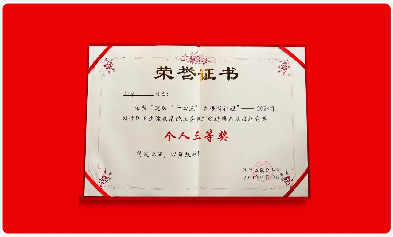 本次競賽自籌備以來,經(jīng)過集中培訓、遴選推薦,來自閔行區(qū)醫(yī)療急救中心、上海市閔行區(qū)中心醫(yī)院、上海市第五人民醫(yī)院、閔行區(qū)腫瘤醫(yī)院等35支隊伍,共140名選手參加了比賽。經(jīng)過初賽階段激烈地角逐,共有8支團隊、8名個人進入決賽。面對實力強勁的競爭對手,上海藍十字腦科醫(yī)院參賽隊的選手們沉著冷靜、有條不紊、通力協(xié)作,充分展示了應急救護的規(guī)范操作流程。最終,上海藍十字腦科醫(yī)院參賽隊榮獲團體及個人三等獎。