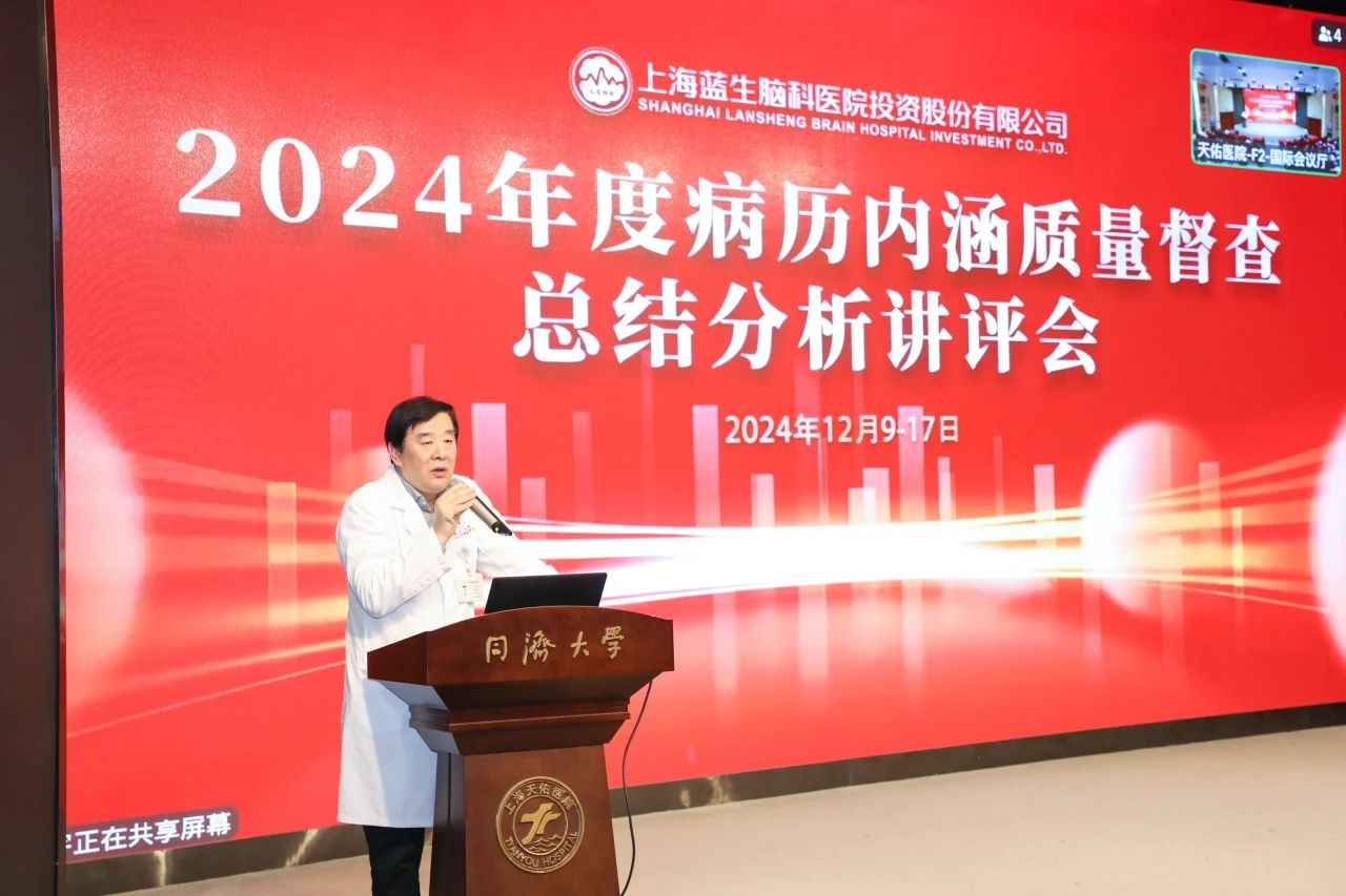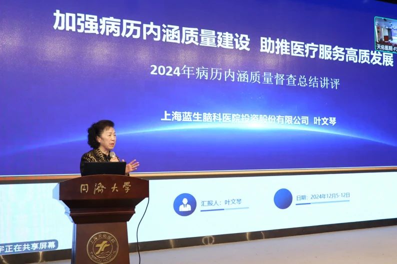 12月9日下午,公司2024年度病歷內涵質量督查總結分析講評會在上海天佑醫院國際會議廳舉行。公司副總裁葉文琴率專家組現場講評。天佑醫院分管院長,病區科主任,醫務科、醫保辦、病案室、護理部負責人,全體醫生、護士長及護理骨干參加學習,蘇州藍十字腦科醫院、深圳藍生腦科醫院相關人員線上參會。會議由公司醫療質量與安全管理委員會副主任委員、上海天佑醫院執行院長王強主持。本次講評是為響應《上海市全面提升病歷內涵質量專項行動實施方案(2023-2025 年)》,不斷強化病歷內涵建設、提高醫療質量和安全的舉措之一。
