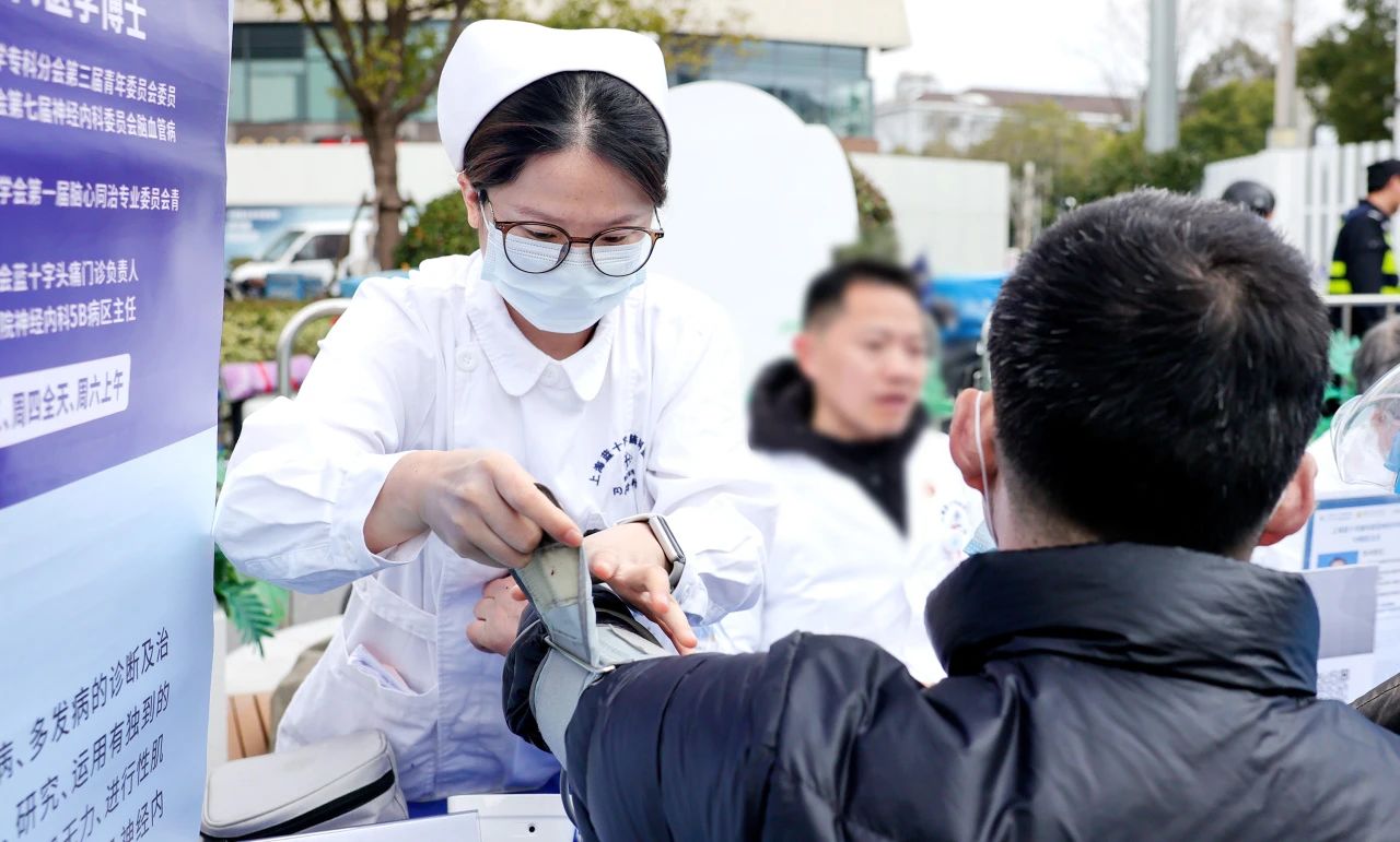 蘇州藍十字腦科醫(yī)院組織資深醫(yī)療專家走進香城花園社區(qū),開展公益咨詢、健康科普、血壓血糖測量等志愿服務(wù),為前來咨詢的居民提供專業(yè)的解答和建議,讓市民在家門口就能享受到優(yōu)質(zhì)、便捷的醫(yī)療服務(wù)。住院病區(qū),醫(yī)院組織住院病患和家屬開展急救知識培訓(xùn),學(xué)習(xí)海姆立克急救法,加大急救知識的普及力度。