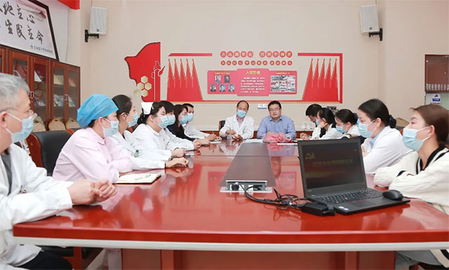 朱敏書記勉勵大家,要立足崗位、爭當表率,振奮精神、迎難而上,哪里有困難,哪里就有黨員;積極以實際行動踐行初心使命,推動醫院高質量發展,用心守護好人民群眾的生命安全和身體健康。