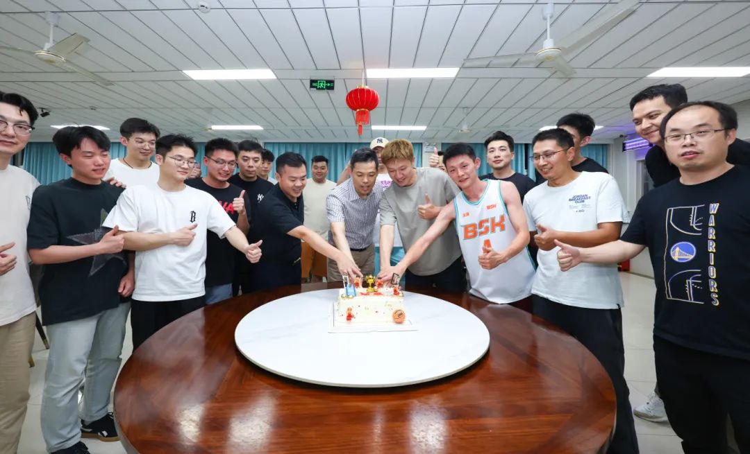 為慶祝男籃奪冠,7月9日,參賽隊員們在院內共同舉行了慶祝儀式。