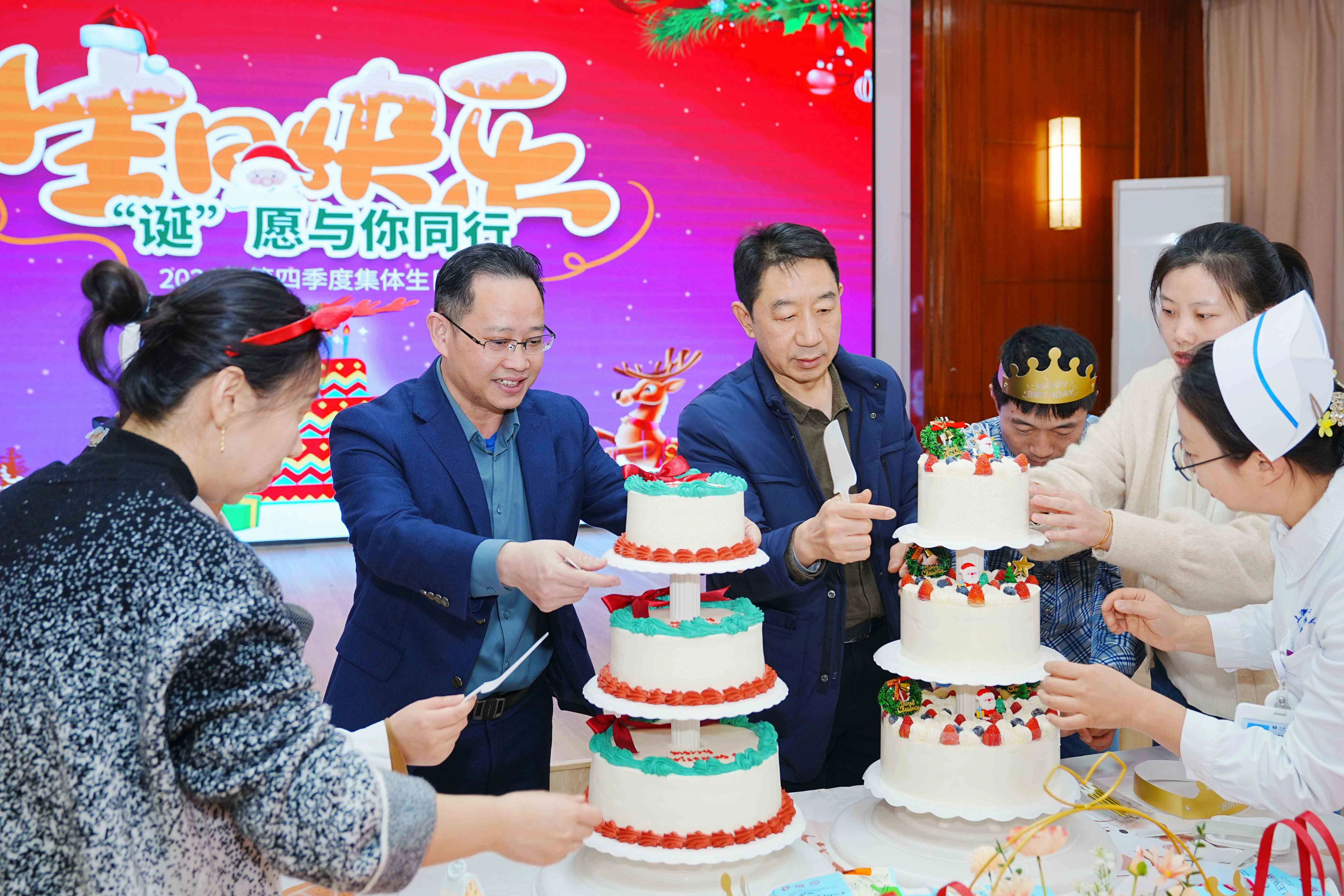 生日祝福歌聲響起,“壽星”代表許下美好愿望,“誕”愿與你一路同行。作為本季度生日會的壽星,周宏宇院長和林志強總經(jīng)理親自為大家切蛋糕,同享生辰喜悅!