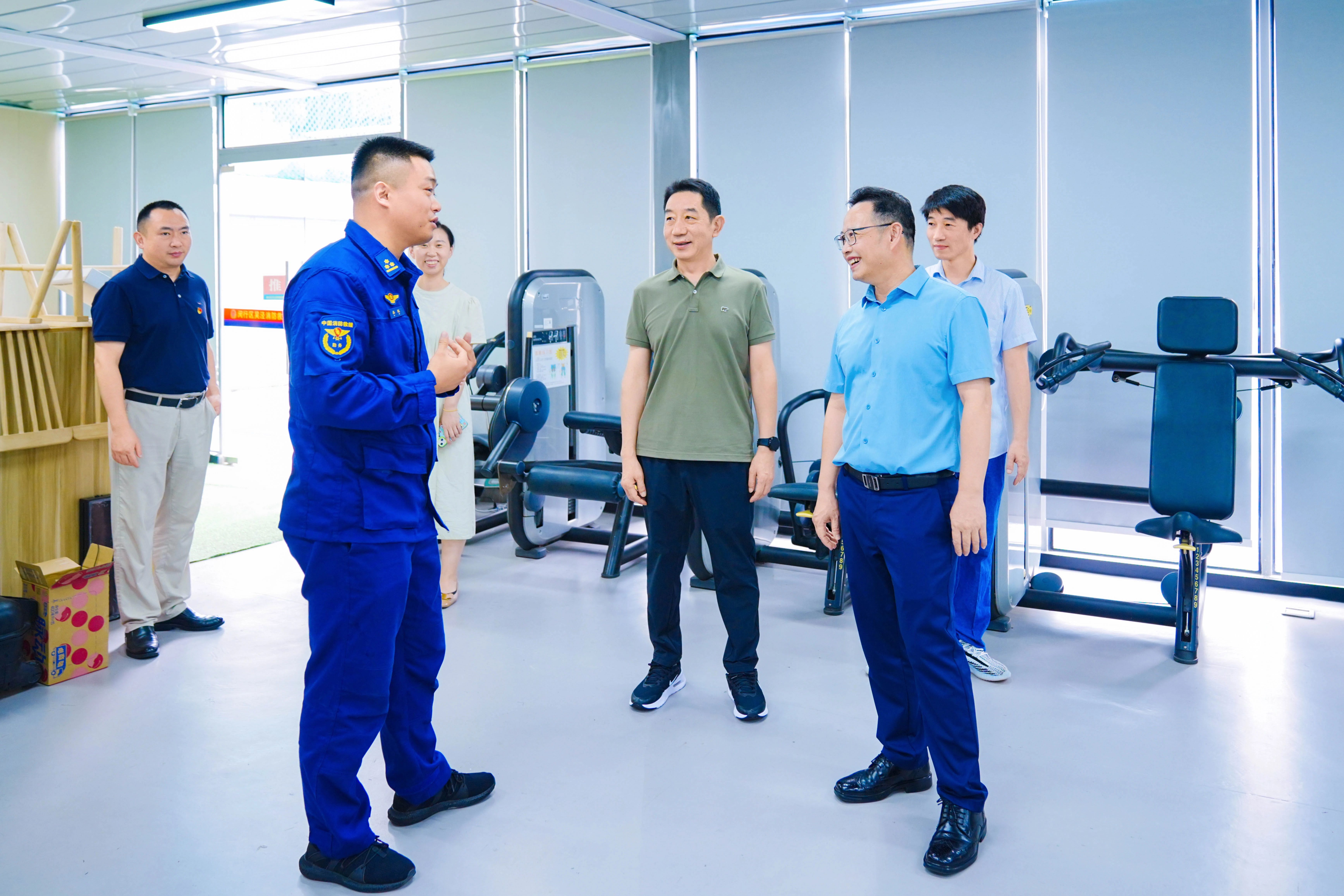 吳涇消防救援站站長吳躍帶領大家參觀了消防站,介紹了消防裝備、器材的使用情況以及日常訓練、滅火救援的工作流程。醫(yī)院領導表示,一直以來吳涇消防救援站與醫(yī)院保持著緊密的共建聯系,在消防救援站的指導下開展了多次消防安全演練活動,使醫(yī)院的消防安全應急處置能力得到較大提升,在建軍節(jié)來臨之際特別送上節(jié)日祝福和感謝。