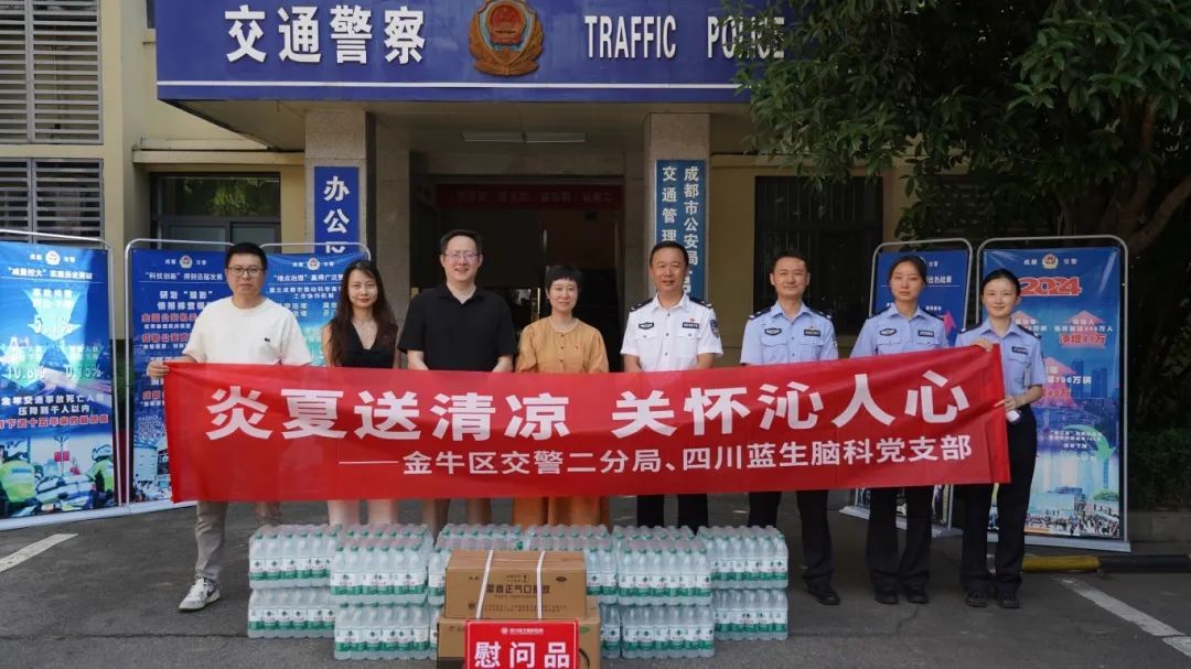 8月11日—15日,四川藍生腦科醫院黨支部組織開展 “盛夏送清涼” 高溫慰問系列活動,聚焦“高溫下的堅守者”。我院黨支部陳瑩書記帶隊走訪茶店子城管、派出所、成都環衛、成都燃氣、成都消防、交警支隊等單位,為炎熱夏季里依然堅守一線的工作者送去防暑物資和健康關懷,將黨組織的關懷從"物質幫扶"延伸至"健康守護"。這種"靶向式"服務,正是醫院黨支部踐行"我為群眾辦實事"的生動縮影。