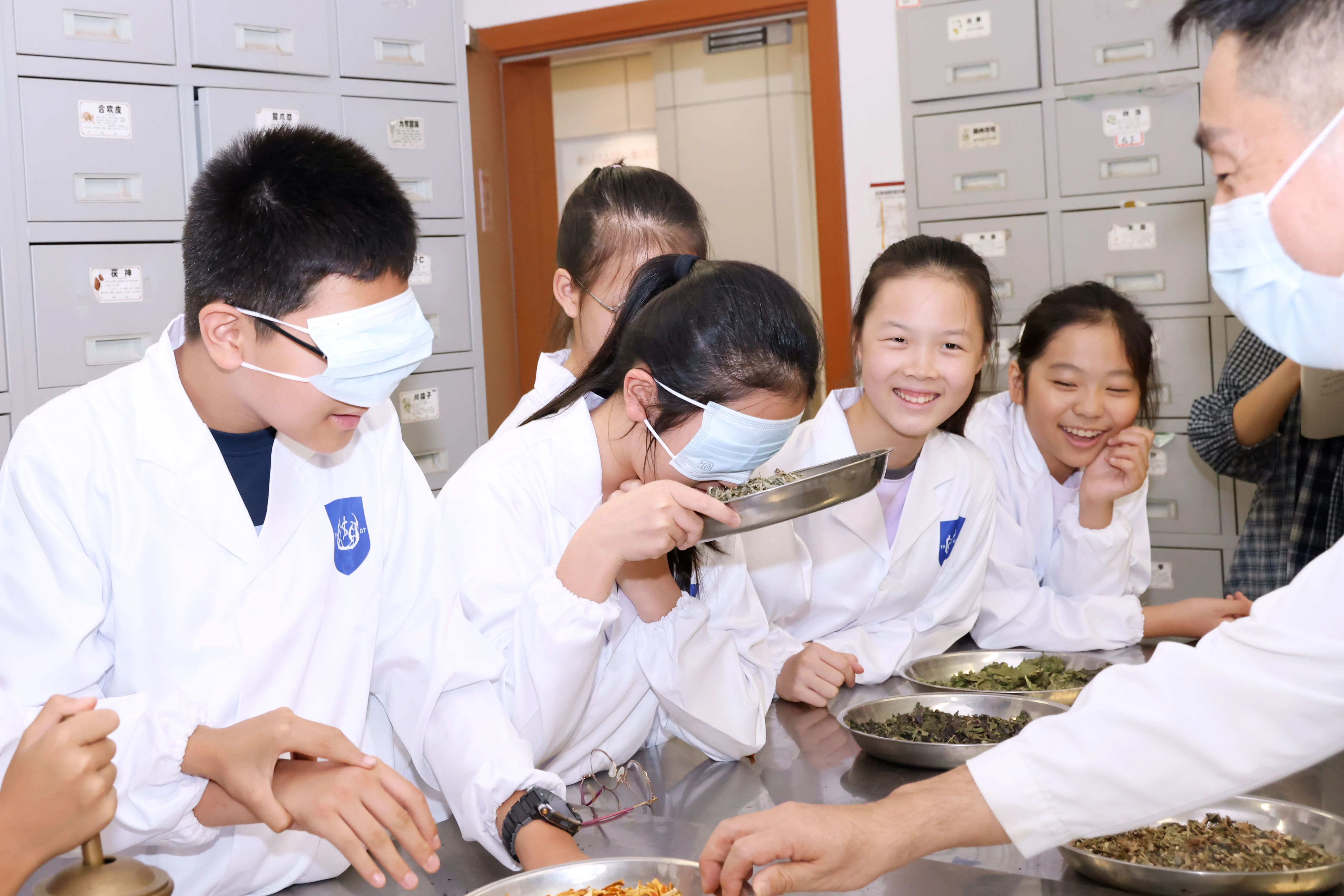 田藥師以提問(wèn)的方式與孩子們互動(dòng),“小朋友們,你們知道這些藥材叫什么名字嗎?”田藥師剛拋出問(wèn)題,小醫(yī)生們就爭(zhēng)先恐后地?fù)尨鹌饋?lái),“這個(gè)黃色的是陳皮,媽媽煲湯時(shí)會(huì)放!”“這個(gè)聞起來(lái)清清涼涼,一定是薄荷!”童言稚語(yǔ)此起彼伏,熱鬧極了。