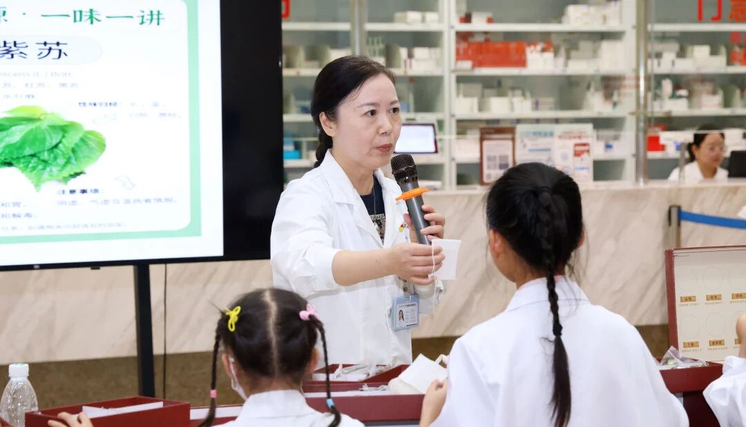下午2時(shí)許,孩子們穿上定制白大褂,在門診大廳興奮合影后,迫不及待地開(kāi)始了體驗(yàn)。在中藥房,田韶波藥師早已備好紫蘇葉、陳皮、薄荷、藿香等多種常見(jiàn)藥材,迎接“小中醫(yī)”的到來(lái)。