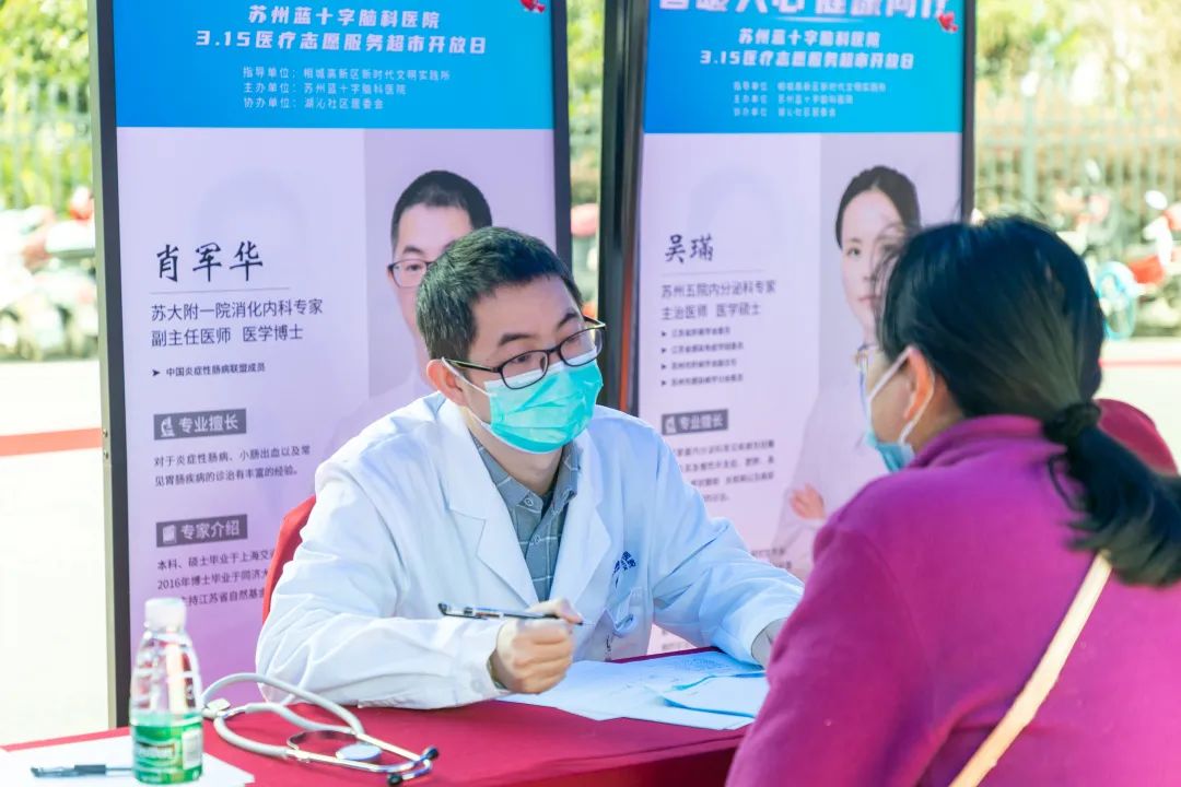 人勤春來早,奮進正當時。在這草木蔓發、春山可望的美好時節里,為深入貫徹黨的二十大精神,大力弘揚“敬佑生命、救死扶傷、甘于奉獻、大愛無疆”的崇高職業精神和新時代志愿者服務精神,按照蘇州市衛生健康委員會《“十四五”衛生健康標準化工作規劃》要求,由相城高新區新時代文明實踐所傾情指導,蘇州藍十字腦科醫院于2023年3月15日攜手湖沁社區居委會開展3.15醫療志愿服務超市開放日,來自臨床12個科室的24位特需及本院專家為市民朋友們提供健康公益咨詢服務,以實際行動踐行“誠信醫療,誠信服務”理念。